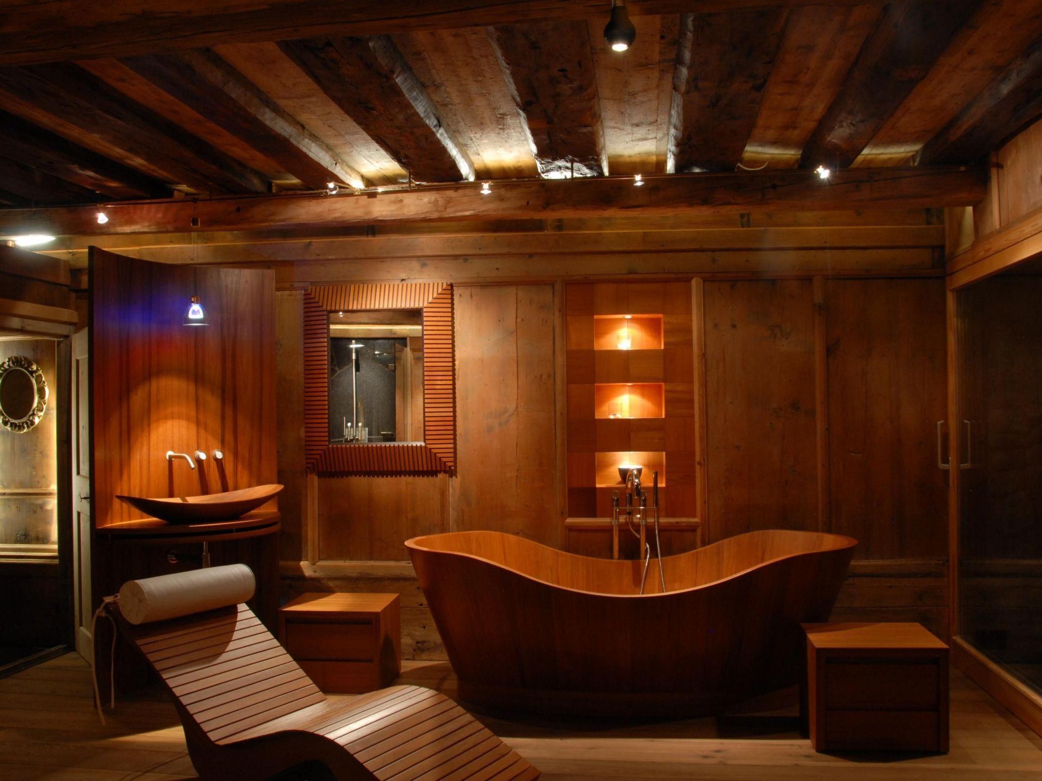 The ultra-modern kitchen equipment naturally includes a spacious fridge with freezer compartment (Miele), a dishwasher (Miele), an electric oven (Miele-Imperial), a wood-fired oven, a lava stone grill (Gaggenau), electric hobs and induction cookers (Küppersbusch), a Saeco espresso machine, bread slicer, a steam cooker (Imperial) and plenty of cupboards for crockery (fully stocked, of course) Do you enjoy cooking? Then you'll get your money's worth in our kitchen. A pair of stylish bar stools at the all-round kitchen counter create a modern atmosphere, and you can make yourself really cosy on the red leather couch, while a large HD plasma TV with satellite connection (including Sky) and a Beolit 12 from Bang & Olufsen provide entertainment. A large dining table is available for socialising. The large south- and north-facing windows and the extensive, largely indirect lighting (Swarovski living room lighting) as well as the solid, partly handcrafted furniture made of untreated natural wood lend the room a special flair. The generous window front provides a great view of the valley and pleasant lighting. This window front can also be opened for a breath of fresh air - outside there is a terrace with a glass front, table and seating. BATHROOMS Three bathrooms - a touch of wellness. The first bathroom is equipped with a combined bathtub and massage shower. Toilets, washbasins and towel rails can of course be found in both bathrooms. The second impresses with a massage shower and a spacious round bathtub. Three windows provide a wonderful view of nature and the valley from the bathtub. The third bathroom, which was only built in 2007, also has a shower and toilet. Our bathrooms are equipped with natural products (old antique wood panelling, teak floors, wet area with local slate). We also provide towels.
