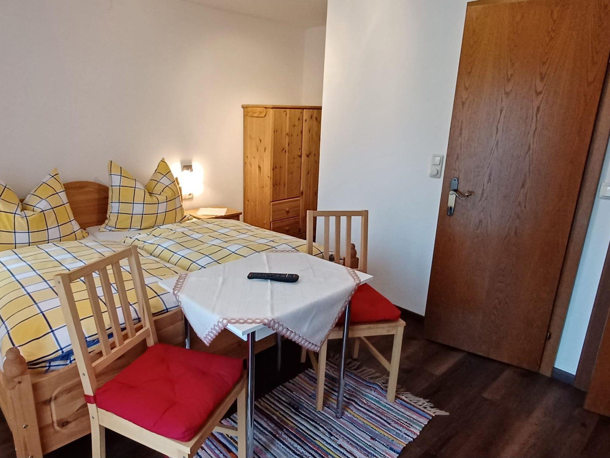 Unser Familienzimmer (mit Balkon) besteht aus 2 getrennten Schlafräumen mit je einem Doppelbett für insgesamt 4 Personen und einer Verbindungstüre, je ein Kleiderschrank ein Tisch mit Stühlen, TV und einer Dusche und einem seberaten WC. Gerne auch mit Frühstück (Buffet) buchbar.