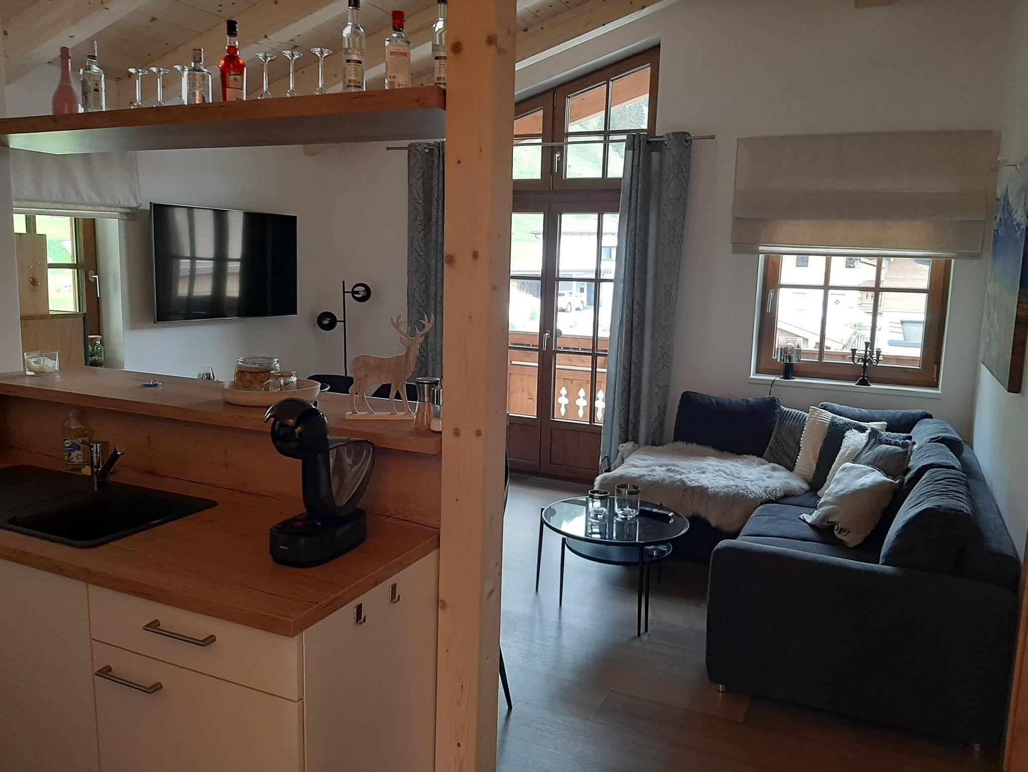 Die Wohnung mit zwei Schlafzimmern befindet sich im Obergeschoss mit Balkon. Die Schlafzimmer sind groß und modern mit Boxspringbett und Flatscreen TV. Ein modernes Badezimmer mit Dusche und WC sowie einem Fenster, gehört ebenfalls zu dieser Ausstattung. Unsere Gäste können nach der Rückkehr von ihren täglichen Aktivitäten an ihrer Bar sitzen. Von dem wunderschön gestalteten, gemütlichen und hochwertig eingerichteten Wohn-Essbereich mit großem Flachbildfernseher, haben Sie einen tollen Ausblick. Entdecken Sie unsere schönen Premium-Chalets und Appartements, die Ihnen einen hohen Erholungswert und bleibende Erinnerungen bieten.