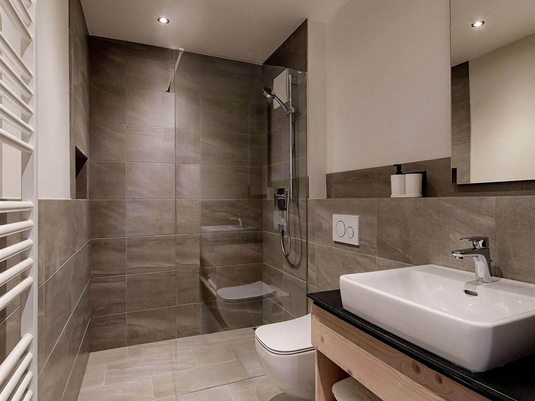 • Badezimmer mit Dusche und WC; beheizter Handtuchtrockner