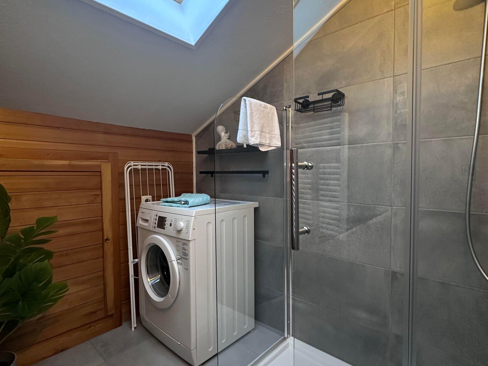 Auf der 1. Stock finden Sie ein geräumiges Wohnzimmer und eine voll ausgestattete Küche, ideal für geselliges Zusammensein. Ein komfortables Schlafzimmer, eine separate Toilette und ein Badezimmer mit Doppelwaschbecken und Dusche bieten Ihnen wirklich Luxus. Genießen Sie die herrliche Aussicht vom Balkon, der sich rund um die Wohnung erstreckt.