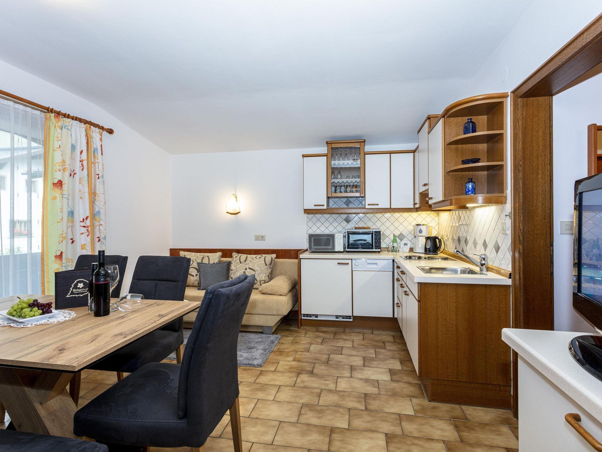 1x Doppelzimmer mit Flat-TV, W-Lan und Balkon, Kinderschlafraum mit Hochbett (1,80 m Bettenlänge), Badezimmer mit Dusche, Doppelwaschtisch, Fön, Seife/Duschbad, Kosmetiktücher, WC separat, Vorraum mit Garderobe, voll ausgestatteter Wohnraum mit Küche, Sitzecke, Liegecouch, Flat-TV, W-Lan, Balkon, Bügeleisen und Bügelbrett, Wäscheständer, Staubsauger,