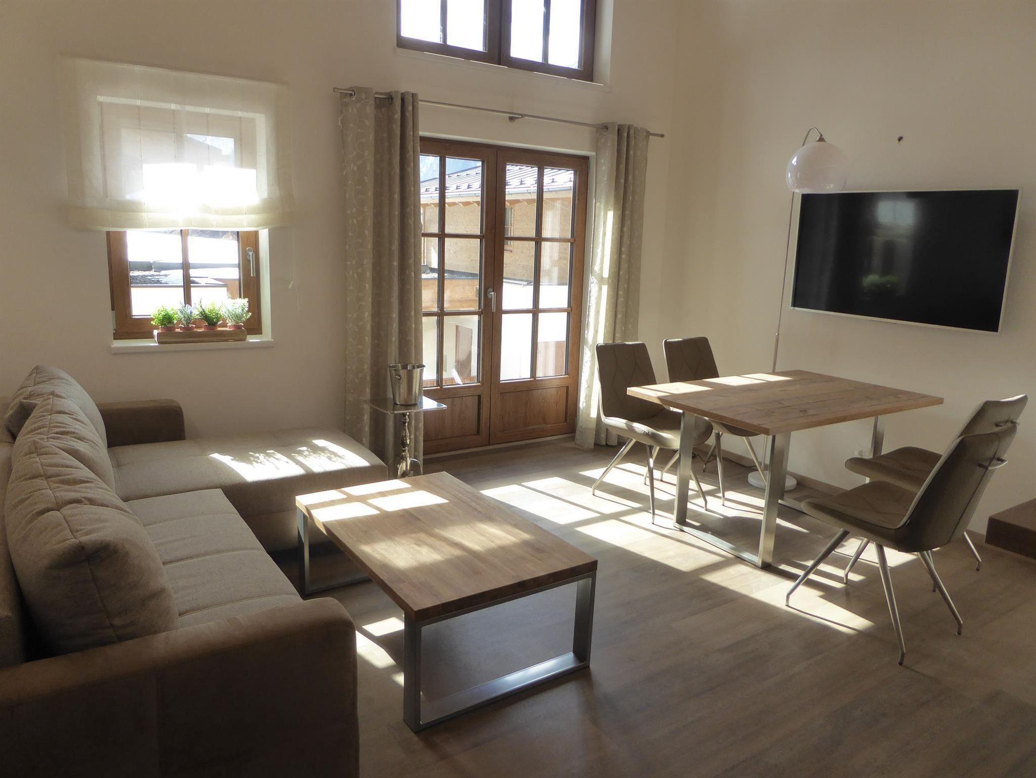 Das Appartement befindet sich im Obergeschoß und hat 2 Schlafzimmer mit Boxspringbett, Schrank, großem TV Flachbildschirm, ein Schlafzimmer hat zusätzlich einen nach Süden ausgerichtetetn Balkon. Darüber hinaus haben wir ein modernes und gemütliches Bad mit Fenster. Wenn Sie von Ihren Unternehmungen zurückkehren können Sie sich an der in die Wohnküche integrierten Bar erholen. Vom großzügig gestalteten und gemütlich und hochwertig eingerichteten Wohn- Essbereich mit großem TV Flachbildschirm haben Sie einen Blick auf den Hohe Sonnblick (3106 m). Vor dem Wohn- Essbreich haben Sie einen großen nach Süden ausgerichteten Balkon.