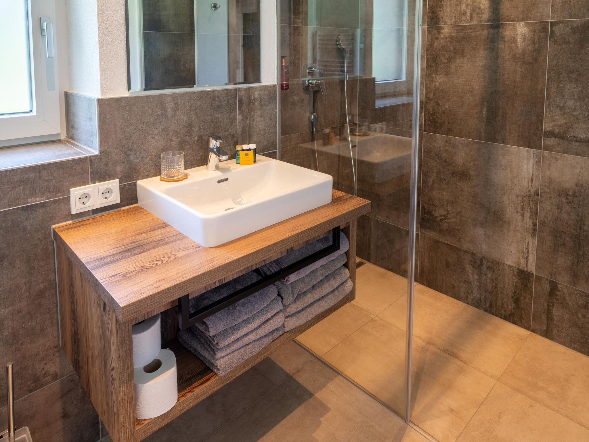 Die Hocharn Penthouse Suite im Alpengold Rauris bietet auf 75 m² Platz für bis zu 6 Personen. Der Holzofen sorgt für alpines Flair und eine gemütliche Atmosphäre. Zwei Schlafzimmer und zwei moderne Badezimmer – eines mit Regendusche, eines mit Badewanne – bieten Komfort und Privatsphäre. Die offene, voll ausgestattete Küche und der helle Wohnbereich mit großer Schiebetür führen direkt auf den großzügigen Balkon mit Blick auf das Raurisertal. Frühstück ist inklusive: Aufschnitt, Milch und Saft stehen bereit, frische Brötchen werden täglich geliefert.