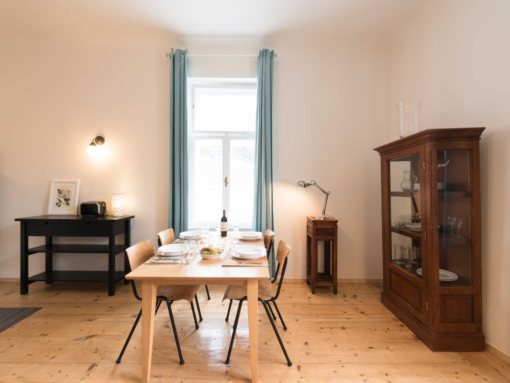 Ein gemütlich-gediegener Landhausstil zieht sich durch alle Apartments, mit Möbeln aus 3 Jahrhunderten. Alle Apartments sind nicht nur teppichbodenfrei, man bewegt sich überwiegend auf 120 Jahre alten Dielen. Dazu alle komfortablen Errungenschaften von heute: gemütliche Badewannen für Zwei (nicht in allen Apartments), Fußbodenheizung im Bad, durchgehend gratis WLAN, Ultraflachbildschirme mit SAT Anschluss (viele davon digital und damit streaming-fähig), DVD Player und eine Auswahl an DVDs etc. Pelletöfen in jeder Wohnung sorgen für gemütliche Wärme und Feuerschein auf Knopfdruck, auch wenn es jenseits des Winters einmal etwas kühler wird.