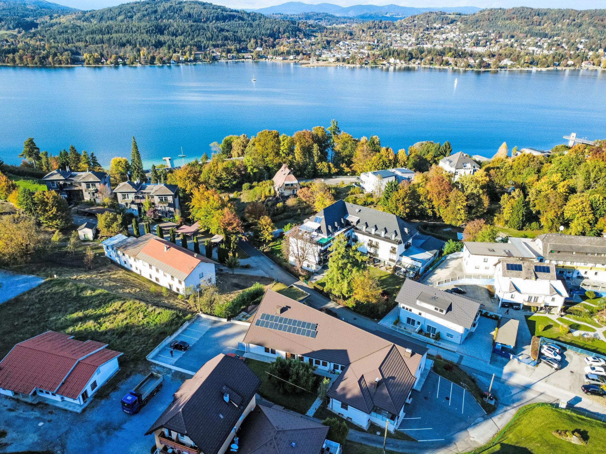 Sekirn 5 km from Autobahnabfahrt: Holiday with friends directly on Lake Wörthersee very modern, comfortable apartment block "Sunshine view", surrounded by trees. In a quiet, sunny position on a slope, 300 m from the lake, direct access to the beach. Parking (for 2 cars) at the house. Supermarket 2 km, bakery 2 km, bus stop "Sekirn Korotan" 400 m, lake Wörthersee 300 m. Golf course (18 hole) 8 km. Nearby attractions: Minimundus Klagenfurt 5 km, Pyramidenkogel 10 km, Casino Velden 15 km, Planetarium, Reptilienzoo Happ, Klagenfurt Zentrum 8 km. Well-known ski regions can easily be reached: Gerlitzen 35 km, Dreiländereck, Nassfeld. Well-known lakes can easily be reached: Wörther See 300 m, Faaker See 20 km, Keutschacher See 6 km. Hiking paths: Nockalm, Gurktal.
