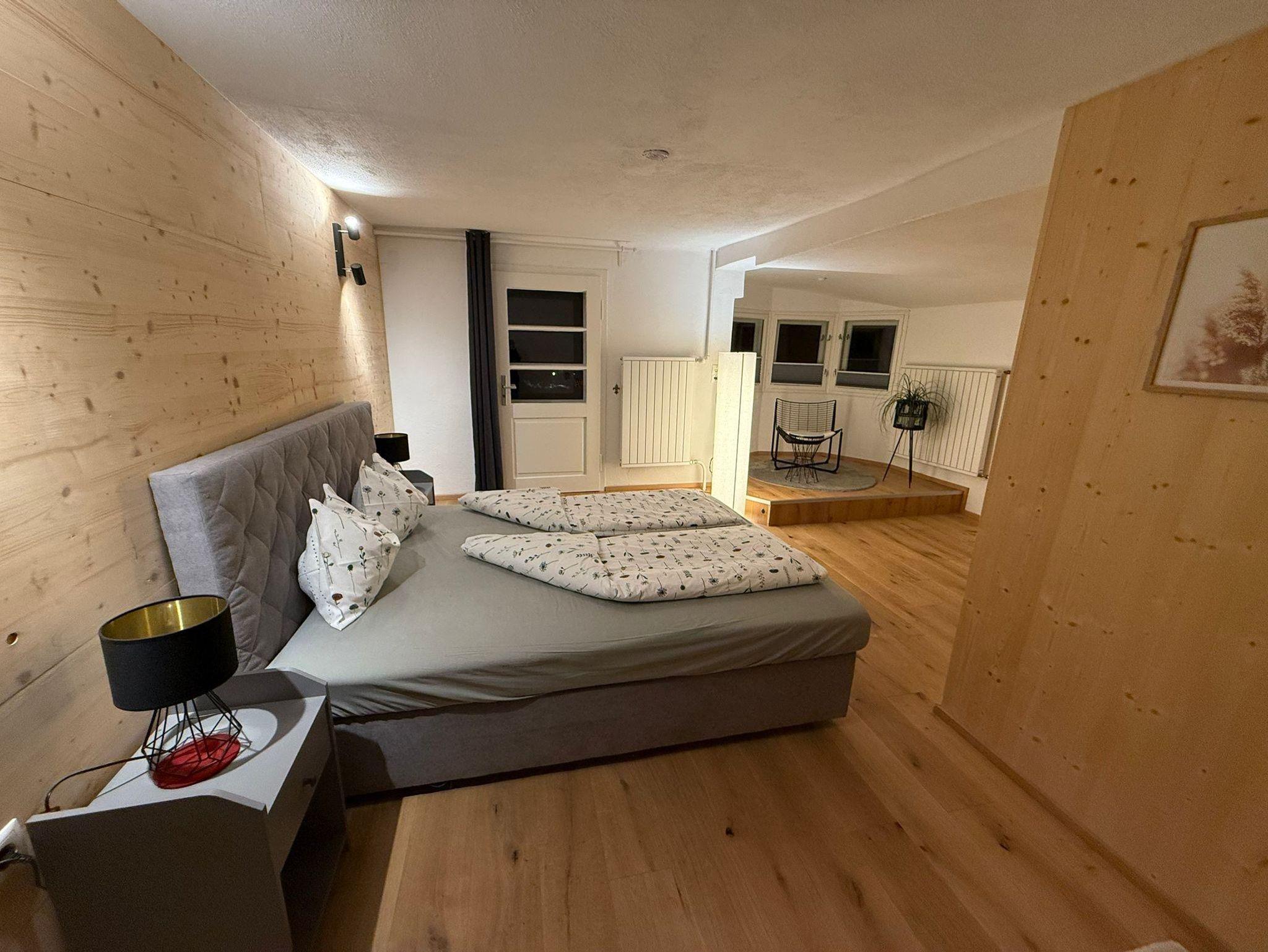 Im offenen Wohnbereich mit großer Fensterfront und Kamin entsteht schnell das Gefühl angekommen zu sein. Vom Balkon oder der Sonnenterrasse aus blickst Du direkt auf die umliegende Bergwelt. Nach einem Tag in der Natur lädt die Terrasse zum Grillen oder einfach zum Durchatmen ein.