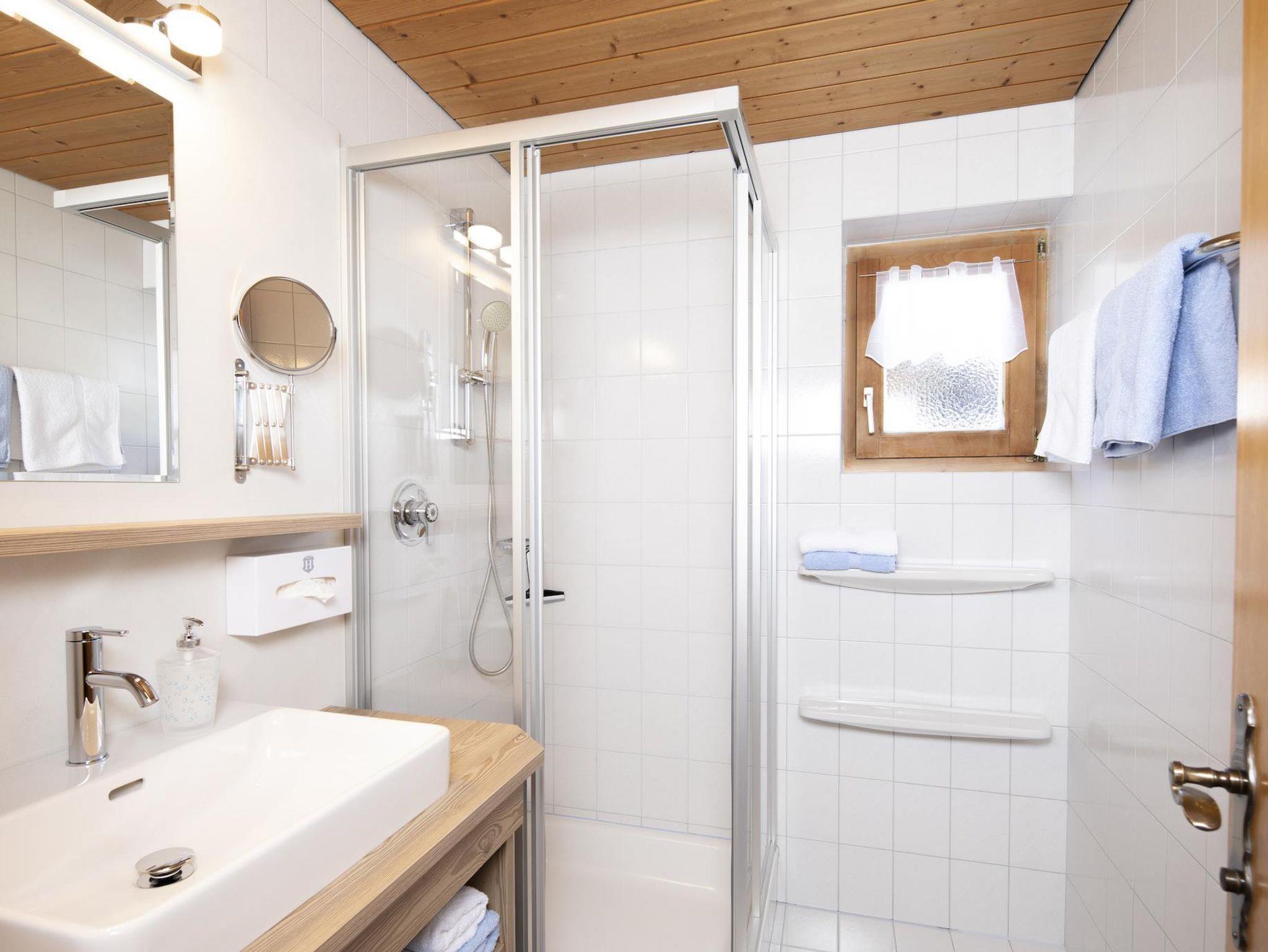 Dusche und WC sind getrennte Räumlichkeiten. Stauräume sowie Ablagemöglichkeiten sind ausreichend vorhanden. Im Vorraum befindet sich die Garderobe. Jede Wohnung verfügt über einen eigenen Balkon mit gemütlichen Sitzmöglichkeiten und herrlichem Ausblick auf die Bergwelt.