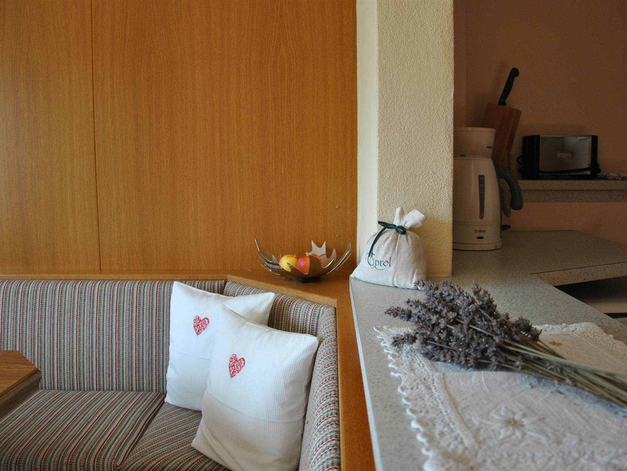 Im Haus sind 3 Doppelzimmer mit DU/WC sowie 14 Appartements für 1-7 Personen. Gäste in den Appartements können auf Wunsch gerne mit Frühstück reservieren. Weiters im Haus: Personenlift, Aufenthaltsraum, kostenloses W-LAN sowie eine E-Ladestation.