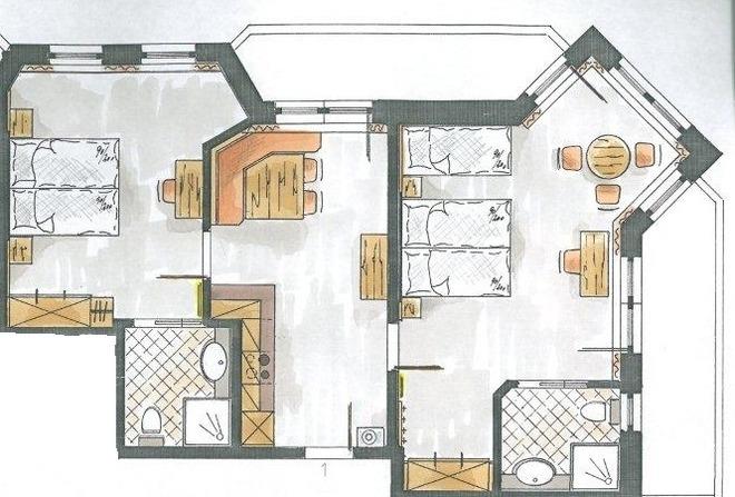 Appartement für 4 bis 5 Personen mit ca. 65 m²