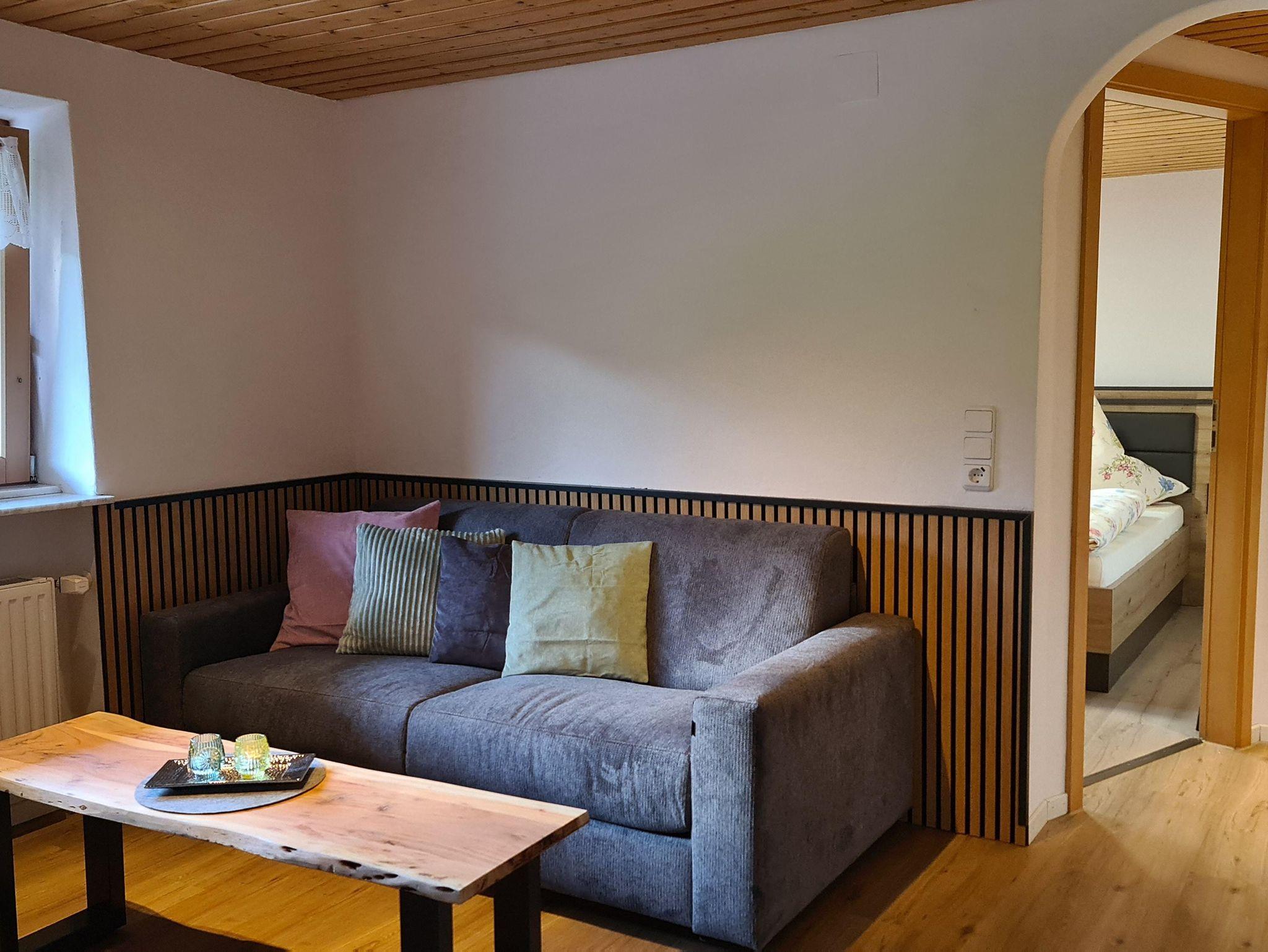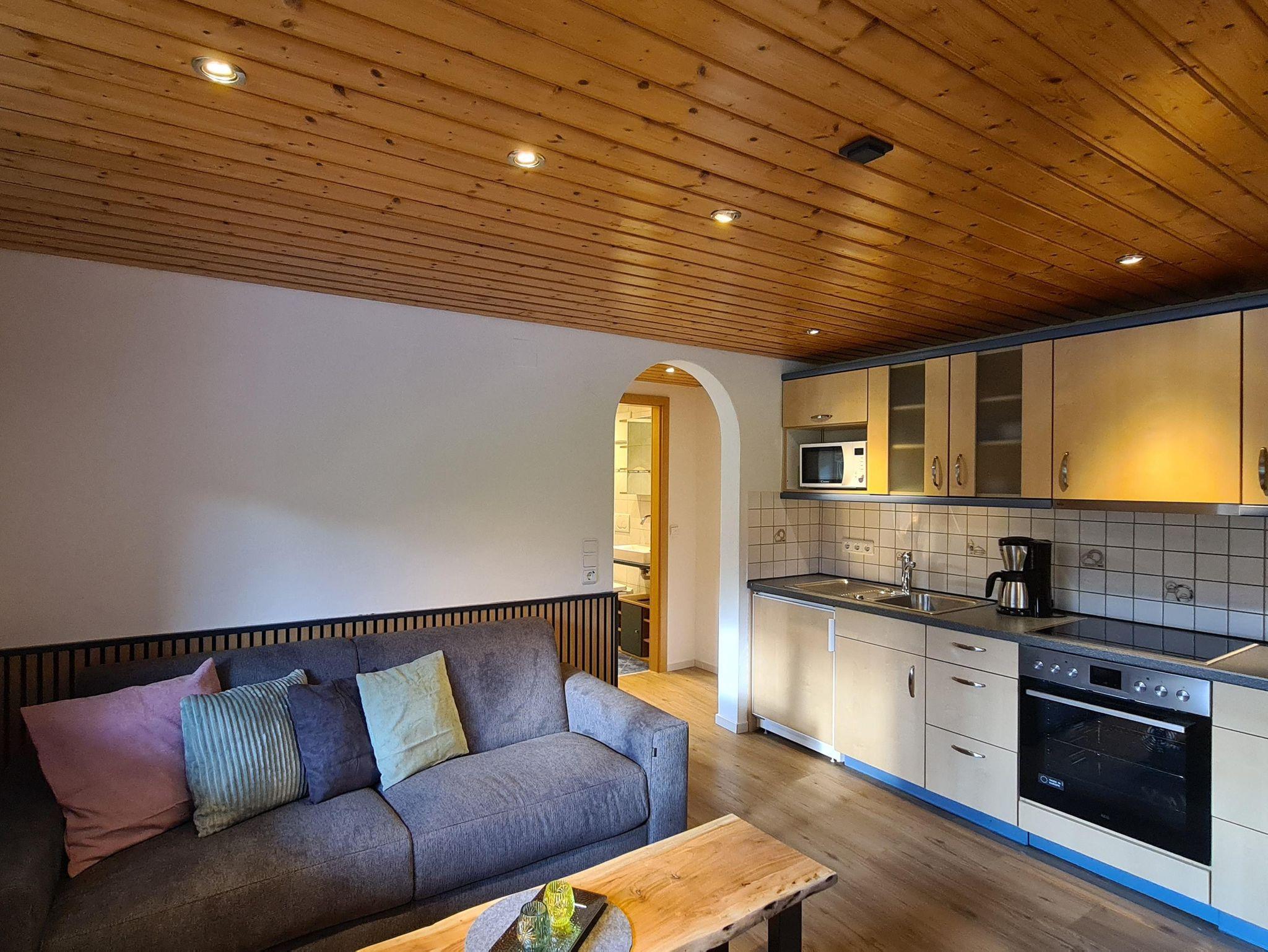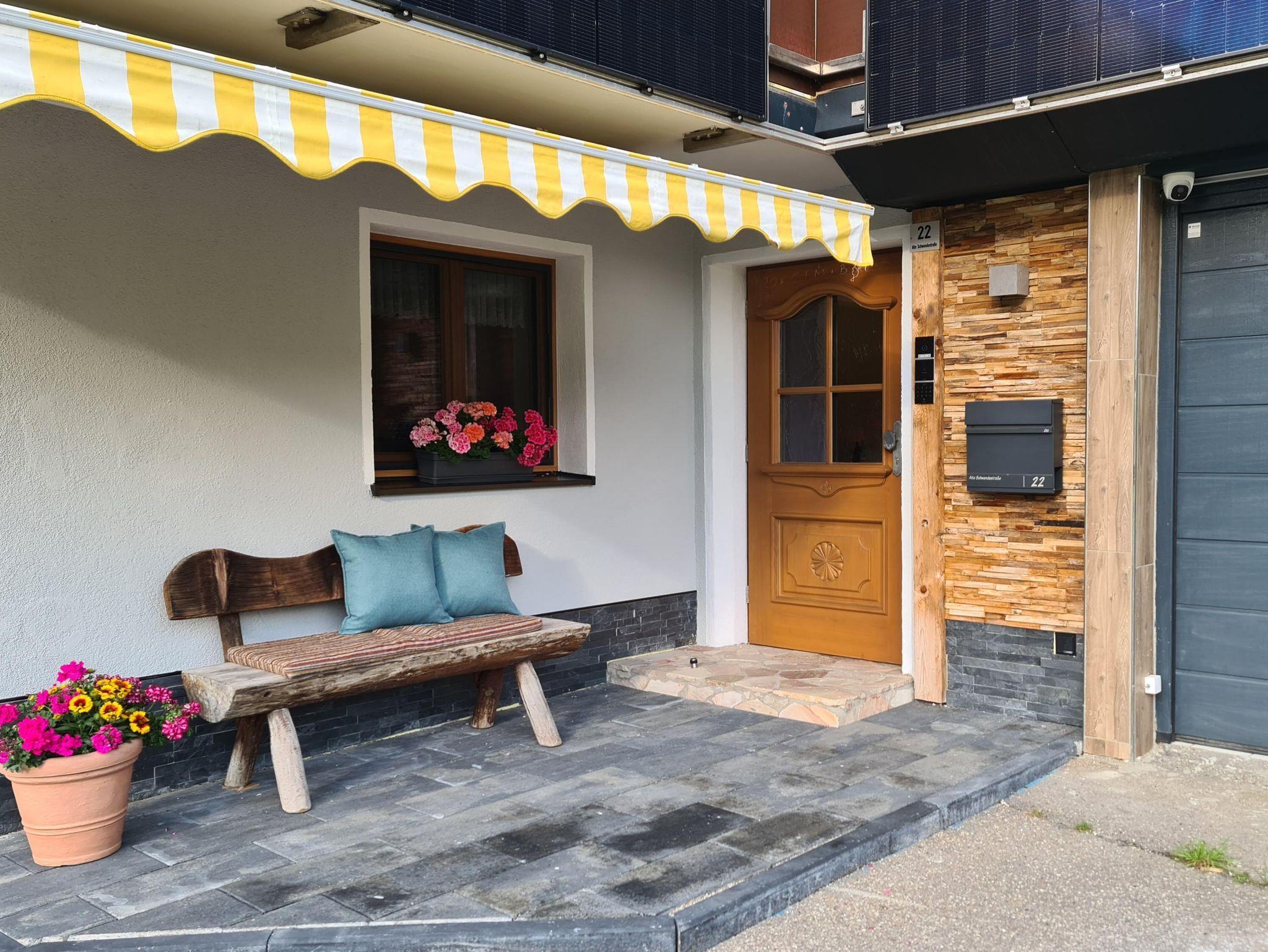 Unser Appartement hat einen separaten Eingang mit Garderobe, separates Schlafzimmer, Badezimmer mit Dusche, Küche mit Backofen und Mikrowelle, gemütliches Wohnzimmer mit Schlafcouch und Essecke, Terasse mit Blick in die Walser Berge