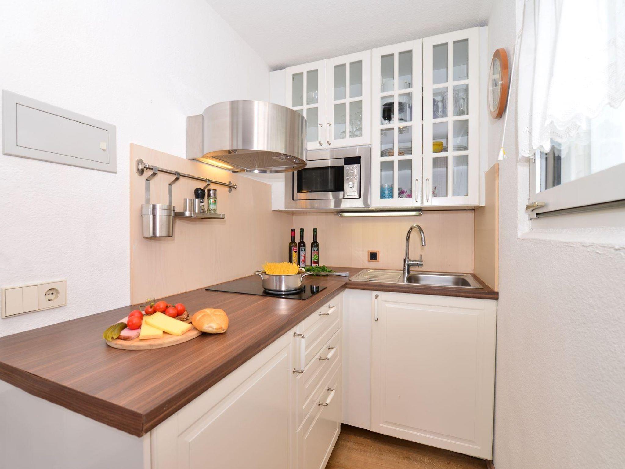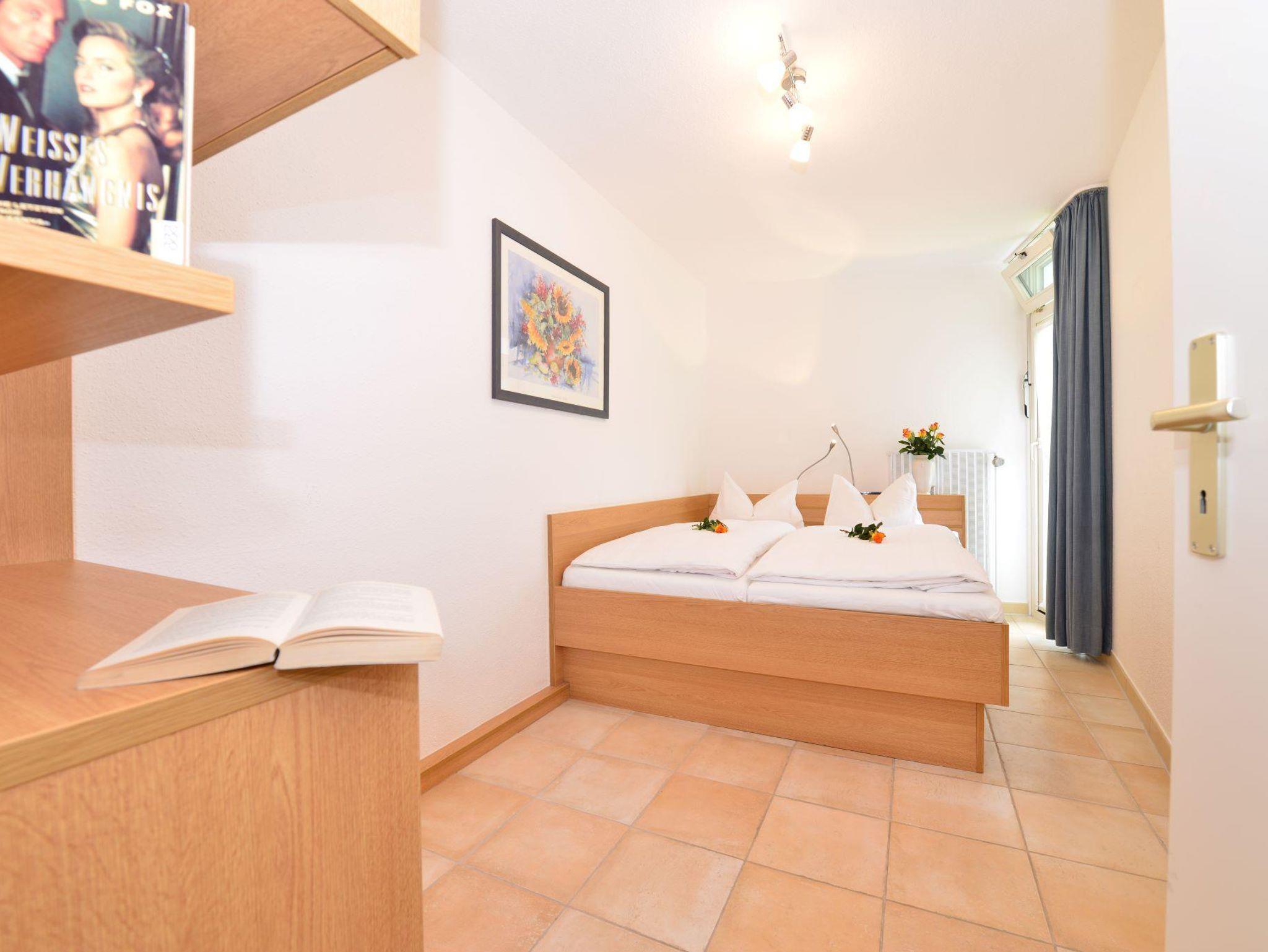 Komfortables 2-Raum Appartement für 2-4 Personen mit Queensize-Bett im Schlafzimmer und einer weiteren Schlafmöglichkeit für 2 Personen im Wohnbereich in Form von Schrankbett oder Schlafsofa. Das Appartement verfügt über eine Kochnische, einen privaten Balkon, ein Bad mit Dusche oder Wanne und Flatscreen-TV. Von Mai bis November ist das Bergbahnticket inklusive.