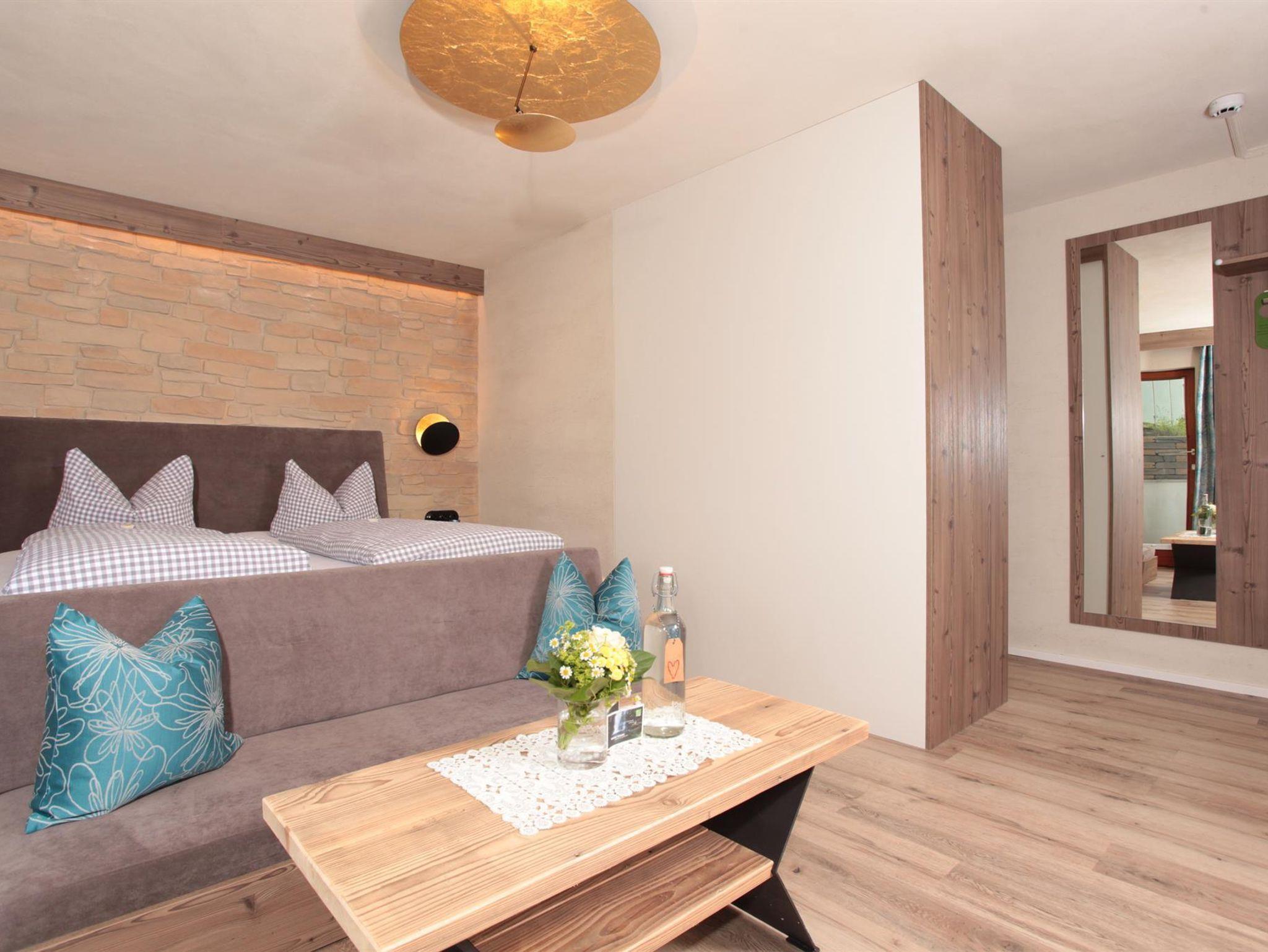Doppelzimmer Alpenliebe verbindet die Tradition der Alpen mit modernen Design. Das DZ Alpenliebe überzeugt mit handgefertigten Möbeln vom heimischen Schreiner, Queensize Bett 160x200, großem Bad mit DU/WC und Hotelfön, Flatscreen SAT-TV, W-LAN, Safe, Designerlampen, Designvinylboden, Schreibtisch, Radiowecker, Wasserkocher mit Kaffee- und Teeauswahl, Kühlschrank, ohne Balkon, Zi. Nr.10, 2.OG, Größe ca. 23 qm