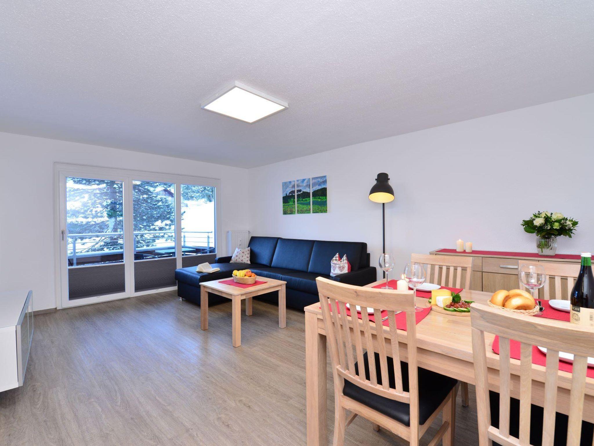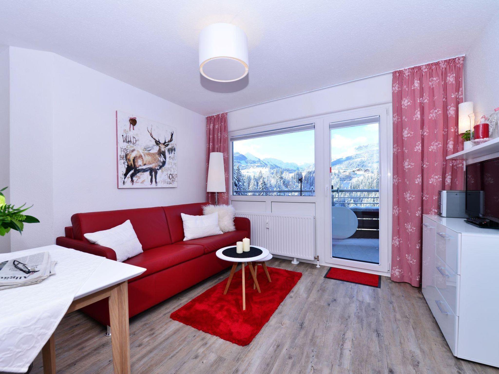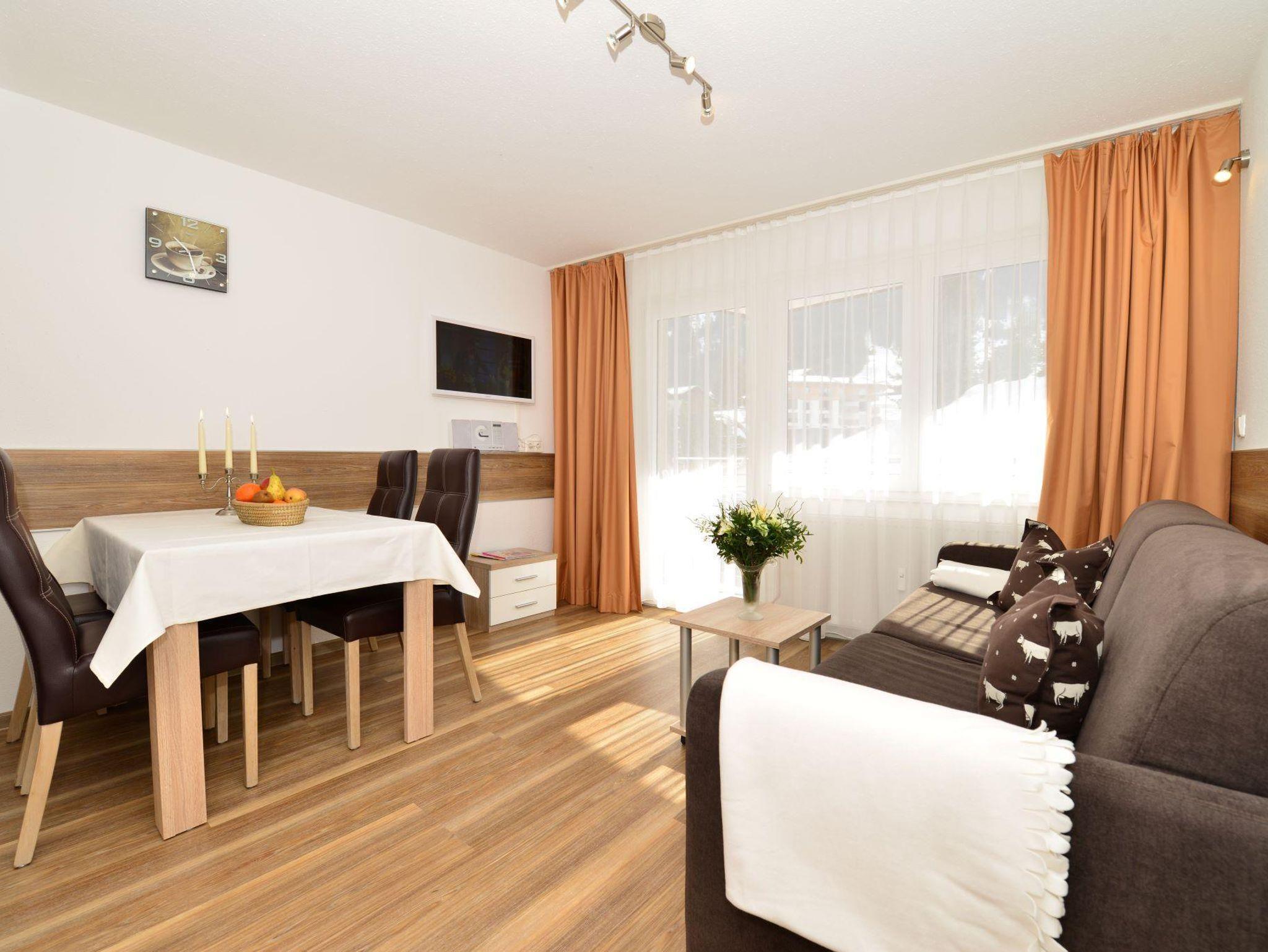 Exklusives 2-Raum Appartement für 2-4 Personen mit Doppelbett im Schlafzimmer und einer weiteren Schlafmöglichkeit für 2 Personen im Wohnbereich in Form von Schrankbett oder Schlafsofa. Das Appartement verfügt über eine Küchenzeile, einen privaten Balkon, ein Bad mit Dusche (oder Wanne?) und Flatscreen-TV. Von Mai bis November ist das Bergbahnticket inklusive.