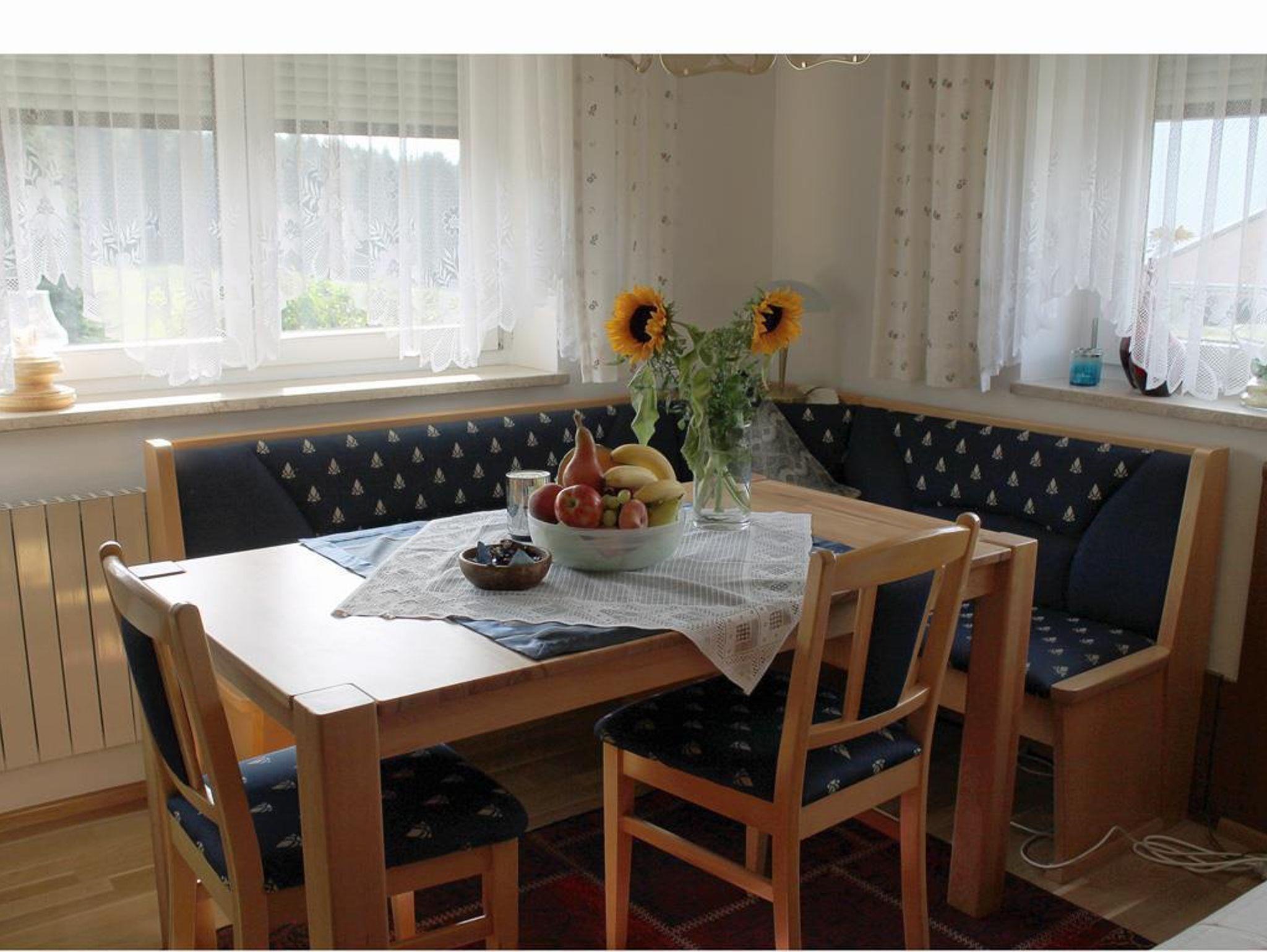 Sie nimmt die gesamte 1. Etage ein und verfügt über 4 Schlafzimmer für maximal 7 Personen, einer gut ausgestatteten Küche mit komfortabler Essecke, gratis WIFI und einem großen Balkon mit fabelhaftem Ausblick auf die umliegenden Wiesen und Berge. Auf dem hauseigenen Parkplatz parkt das Fahrzeug gut und sicher.
