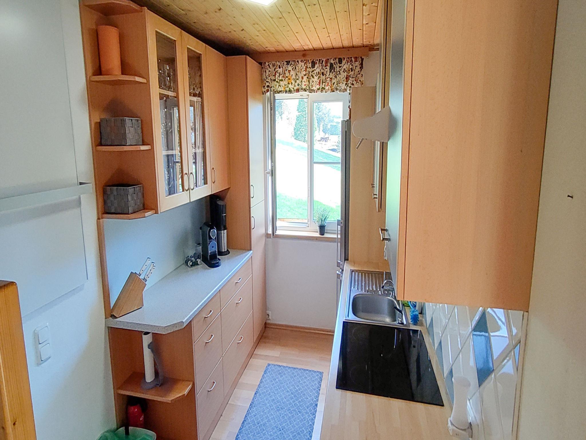 4-room house 85 m2 on 2 levels. Cosy and wooden furniture furnishings: entrance hall. Living/dining room with dining table and satellite TV (flat screen), tiled stove. Kitchen (oven, dishwasher, 4 ceramic glass hob hotplates, kettle, microwave, freezer, electric coffee machine). Shower/WC. Upper floor: 2 double bedrooms. Gallery with 1 double bed and satellite TV. Electric heating. Parquet floors. Very beautiful view of the countryside and the river. Facilities: washing machine, iron, hair dryer. Internet (WiFi, free). 1 pet/ dog allowed. Instead of an enclosed bedroom, some sleeping areas are located in an open-plan area (gallery, alcove, etc.).