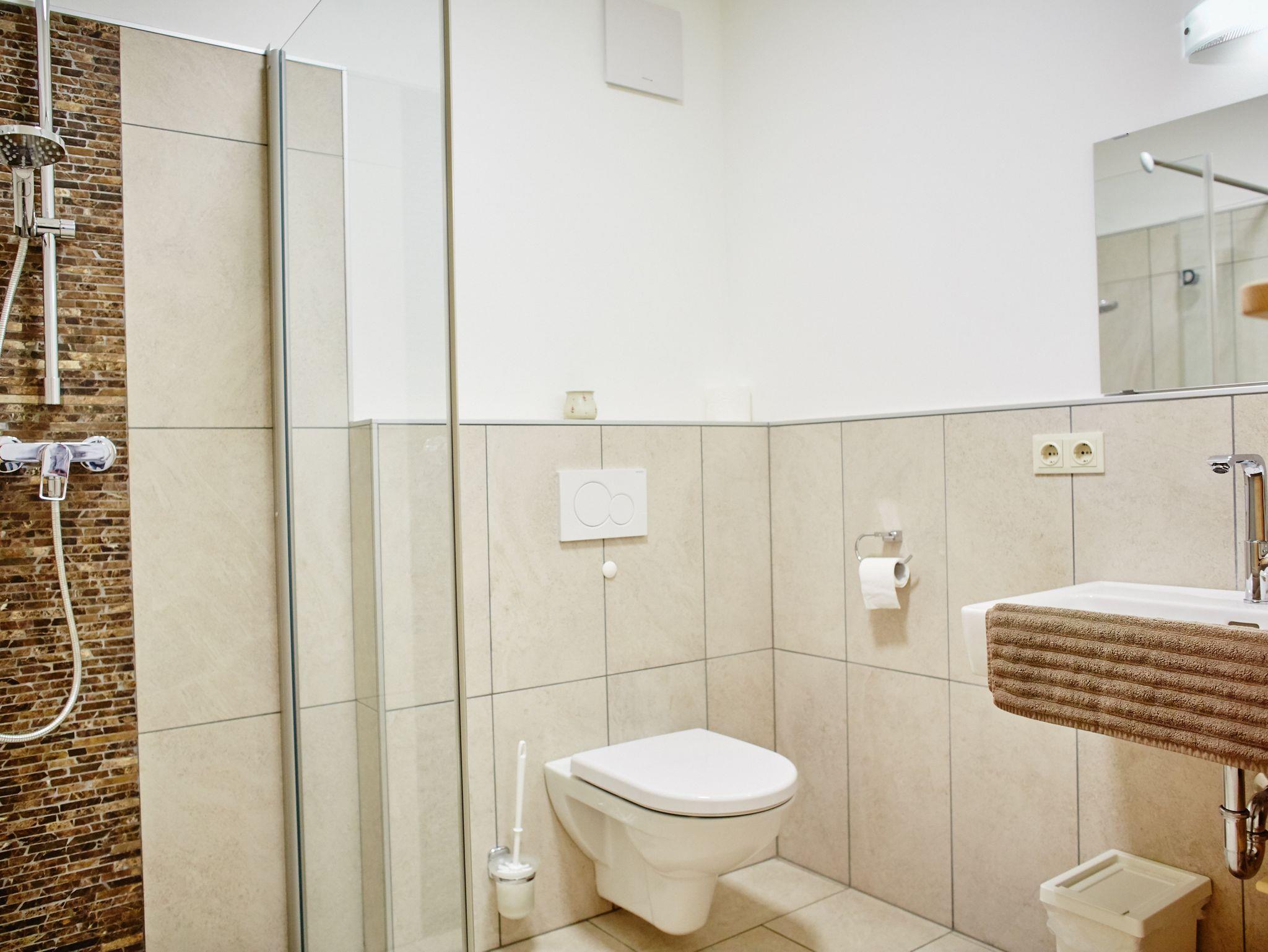 Dusche und WC finden Sie in getrennten Räumen. Mitreisende Kinder von 0-3 Jahren nächtigen im Bett der Eltern kostenfrei.