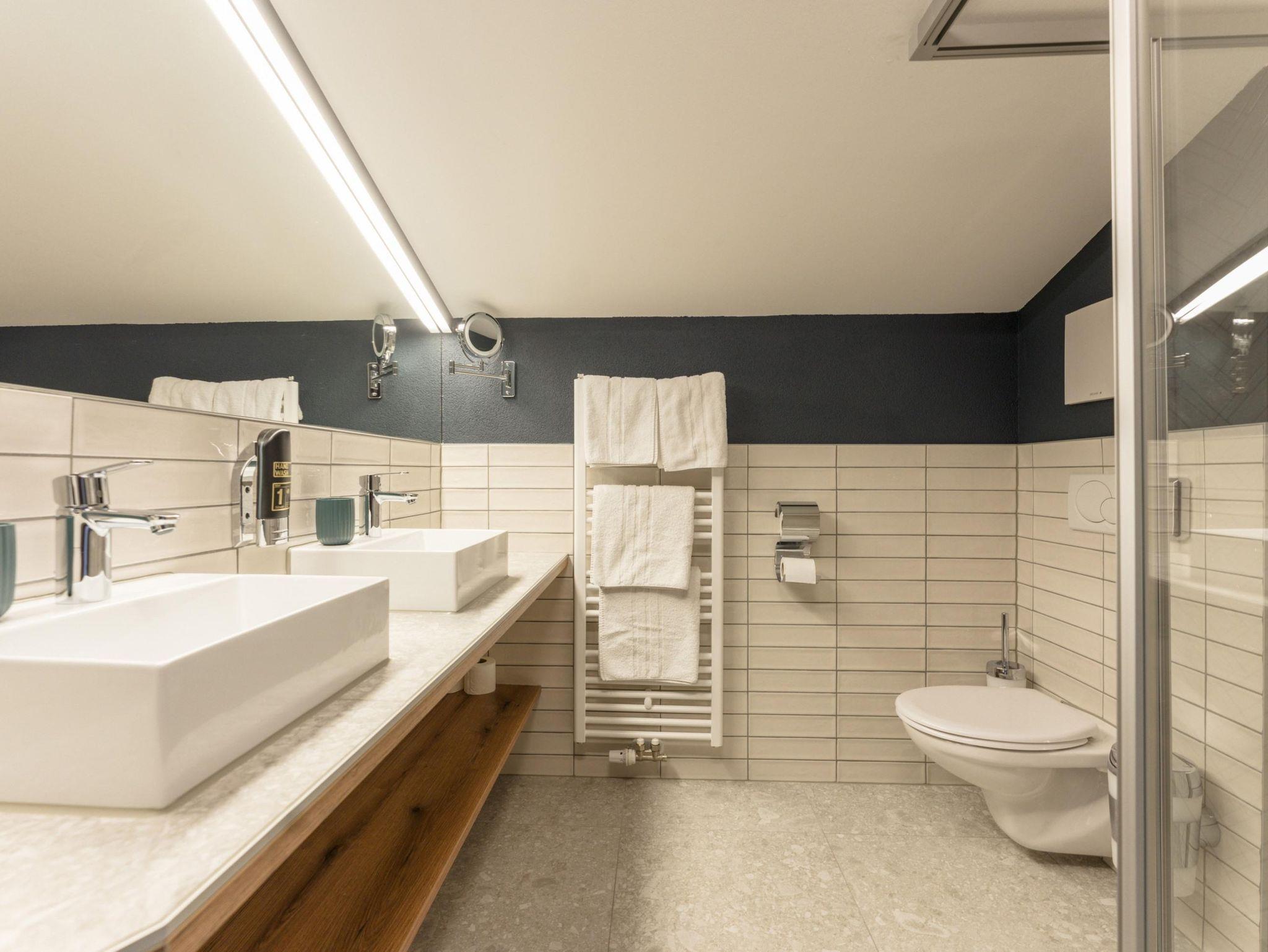 Badezimmer mit Dusche/WC, Schminkspiegel, Haarföhn & Handtuchtrockner