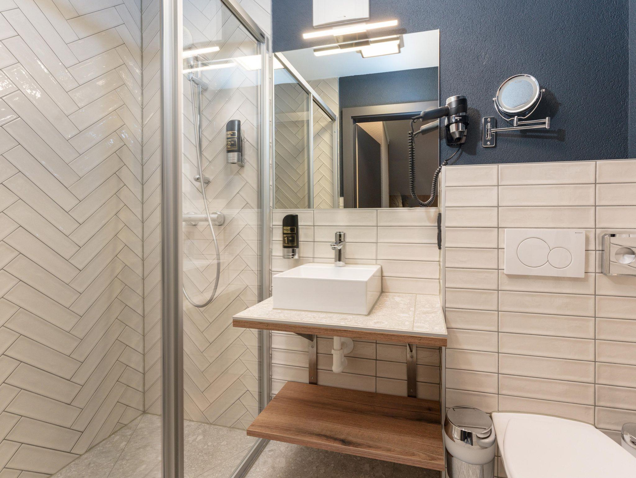 2 Badezimmer mit Dusche/WC, Schminkspiegel, Haarföhn & Handtuchtrockner