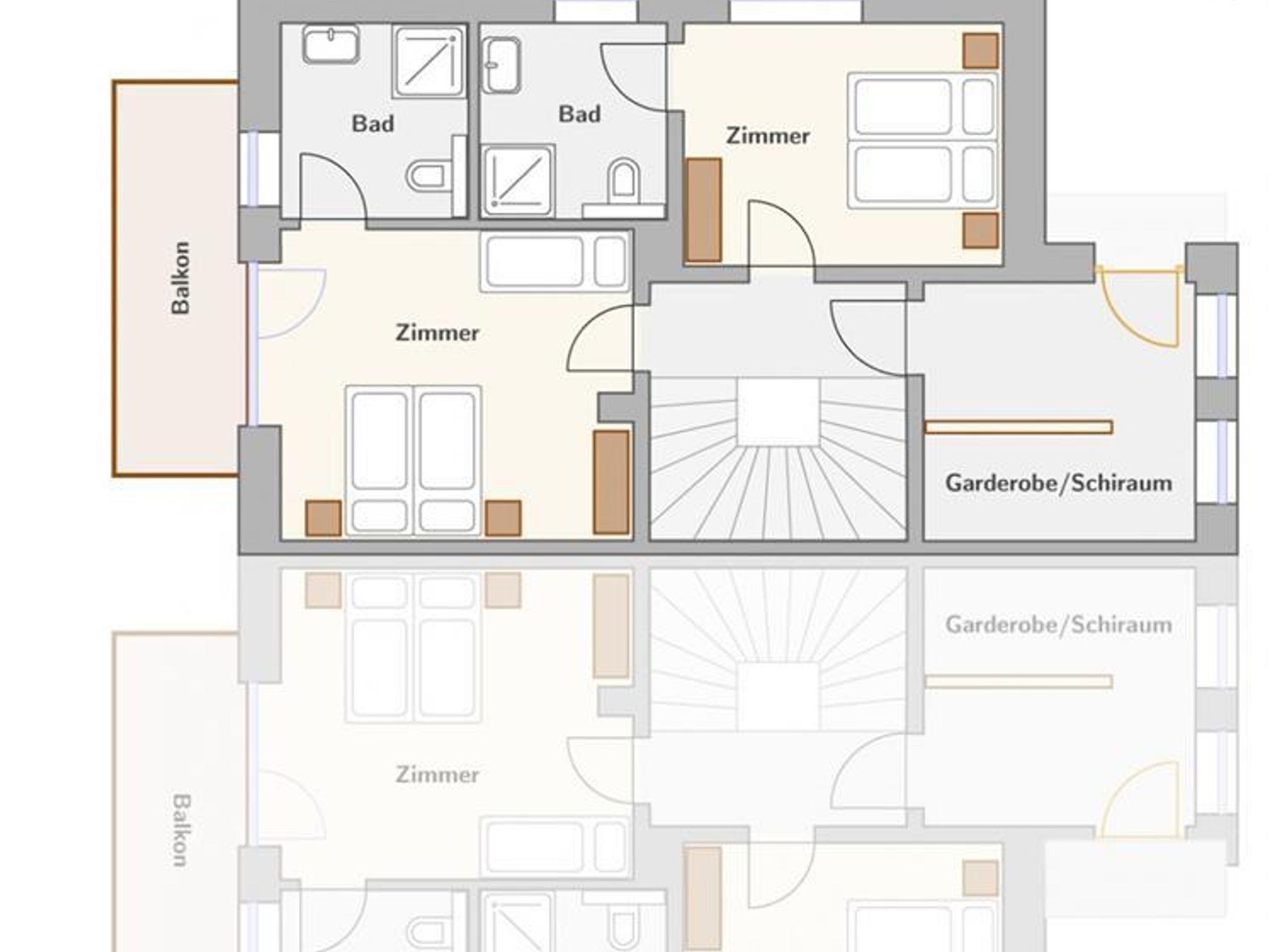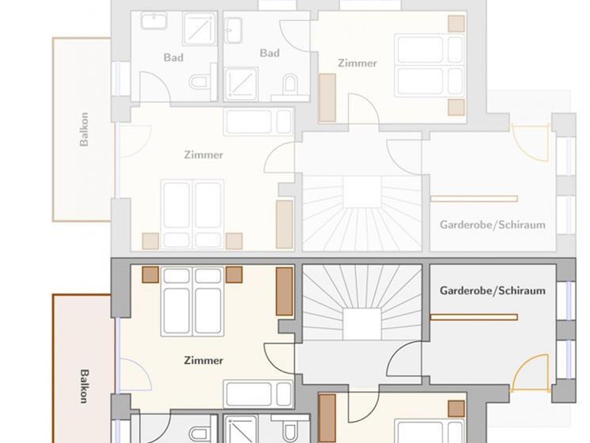 Aufgeteilt in zwei Häusern befinden sich 4 separate Lodges - zwei für je 8 Personen und zwei für je 10 Personen. Jedes der vier Lodges bietet entweder 3 oder 4 Schlafräume mit jeweils einem eigenen Badezimmer und eigenen Wellnessbereich mit Sauna und Ruheraum. Restaurants, Geschäfte und Bushaltestelle befinden sich in unmittelbarer Nähe. Ein Skiraum und ein Schuhtrockner befinden sich in jeder Lodge, der Parkplatz ist direkt vor der Haustüre, Kostenfreies WLAN steht in jeder Lodge zu Verfügung.
