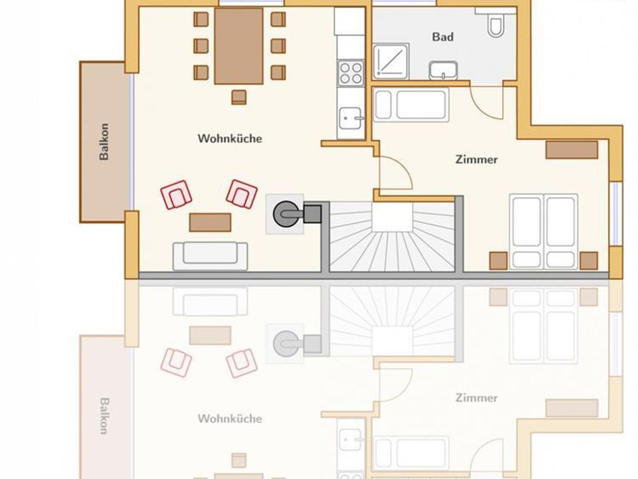 - 1 Schlafzimmer mit Doppelbett + Badezimmer (Dusche, WC)