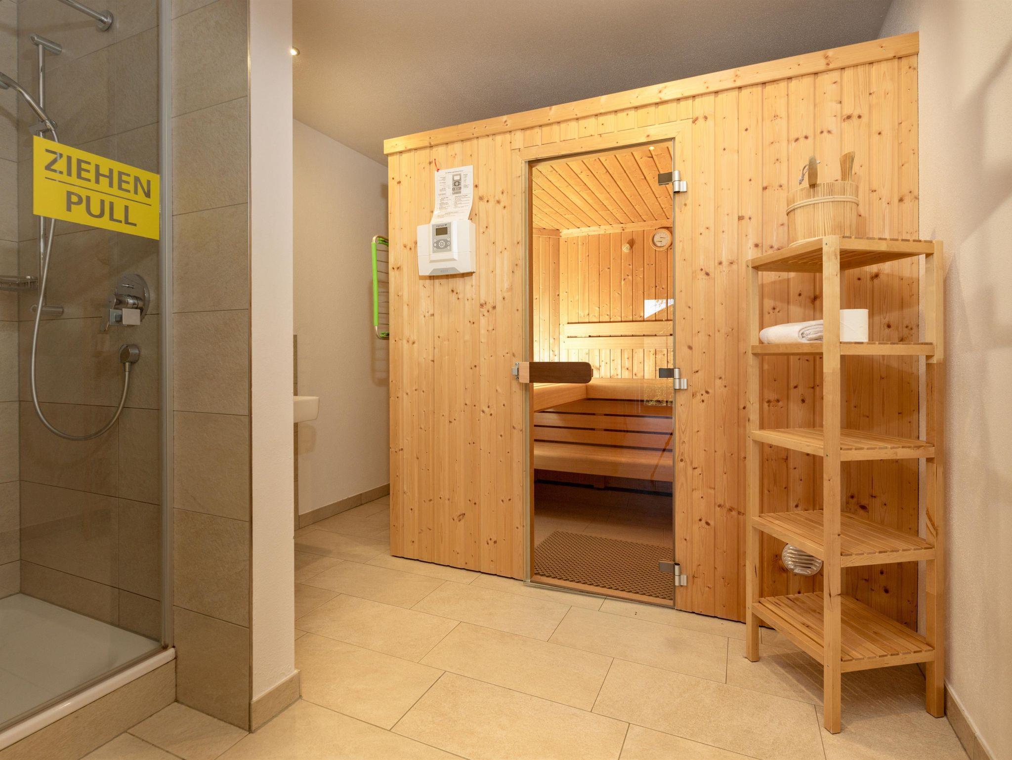 - Wellnessbereich mit Ruheraum, Sauna sowie Dusche und WC