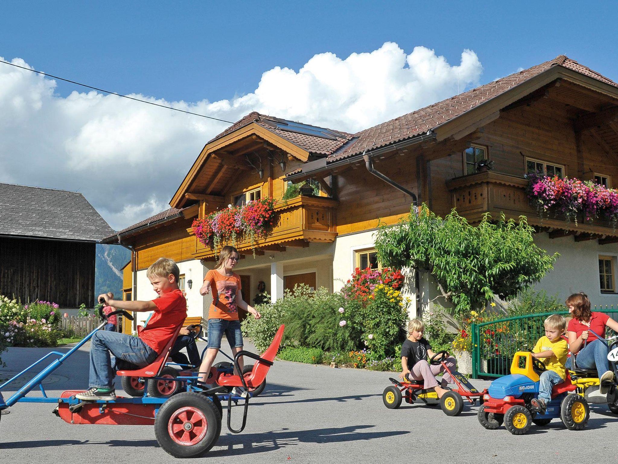 Auf unserem Hof dürfen Kinder noch Kinder sein. Ein riesengroßer Spielplatz, Gokarts und vieles mehr bieten viel Action.