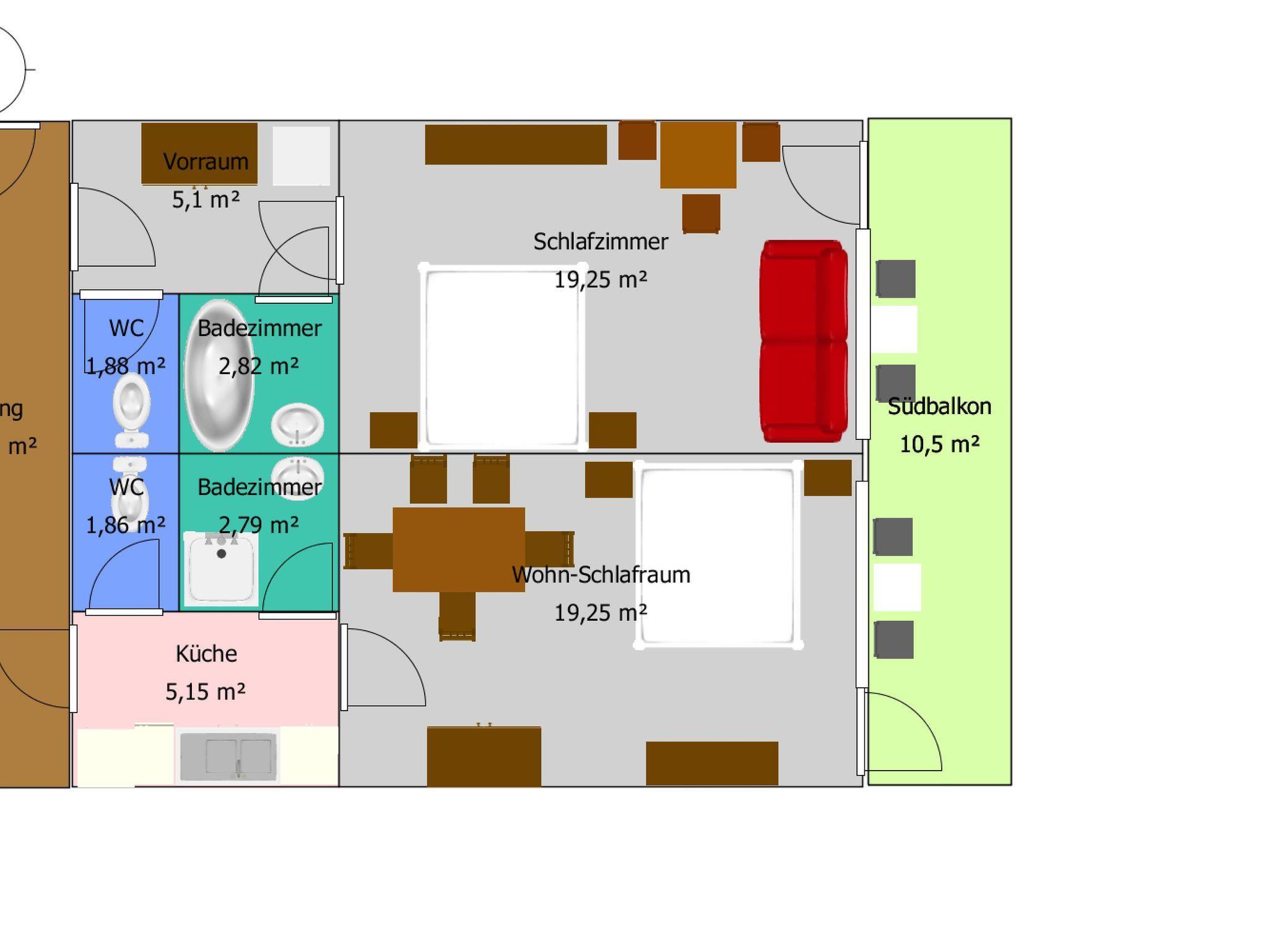 Gemütliches Apartement für 1 bis 5 Personen (70 m²), 1 Küche, 1 Wohn-/Schlafzimmer, 1 Schlafzimmer m. Doppelbett u. Couch, Sat-TV, Safe, 2 Bäder m. Dusche und Badewanne, 2 getrennte WC, Südbalkon, mit toller Aussicht auf die Pyhrn-Priel Region