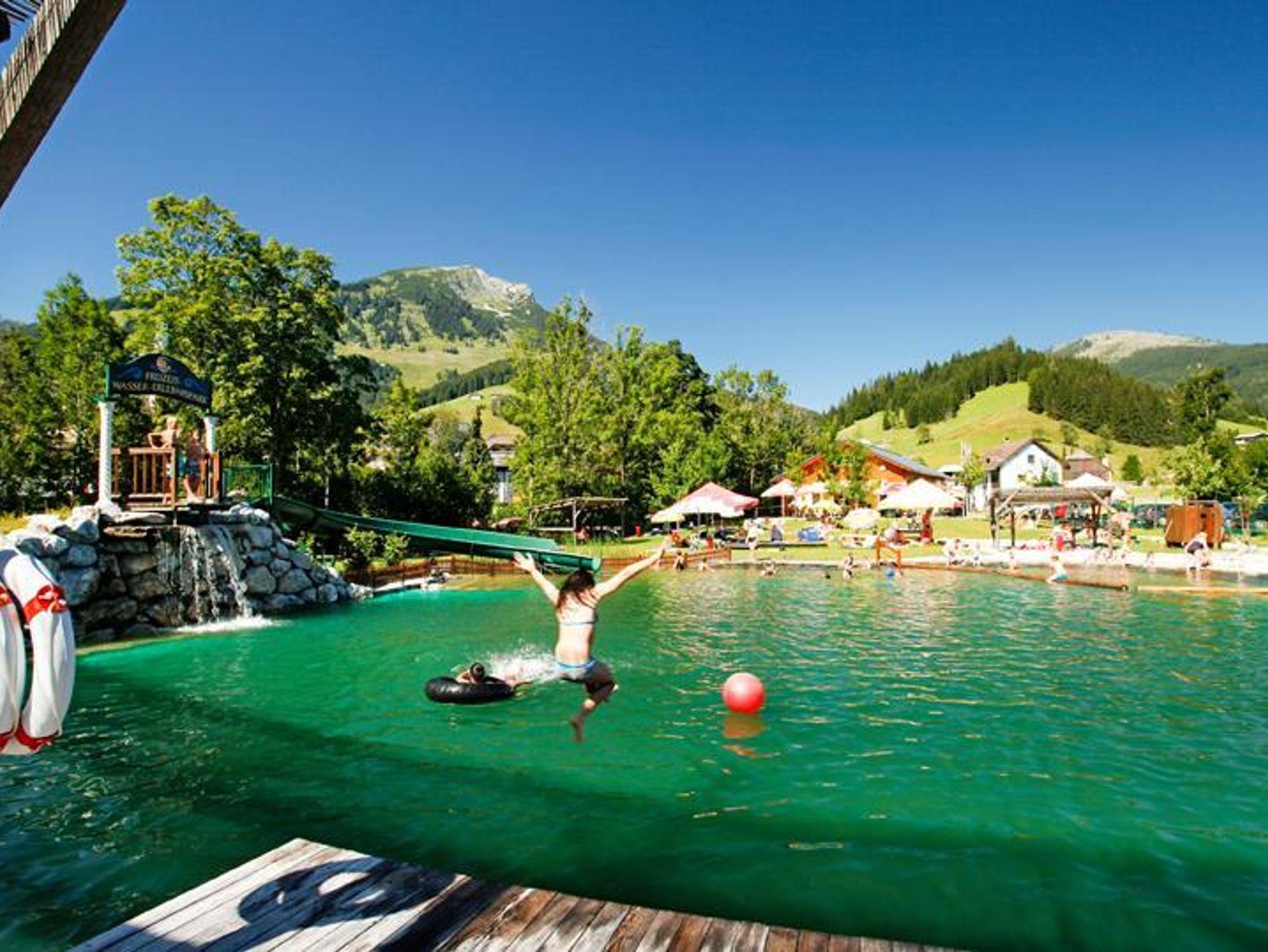 Im Sommer können unsere Gäste direkt hinter der Hotelanalge das Naturschwimmbad kostenlos mitnützen sowie wir die Fahrräder im Resort versperren. Es führen Wander- und Radwege am Dachsteinresort vorbei.