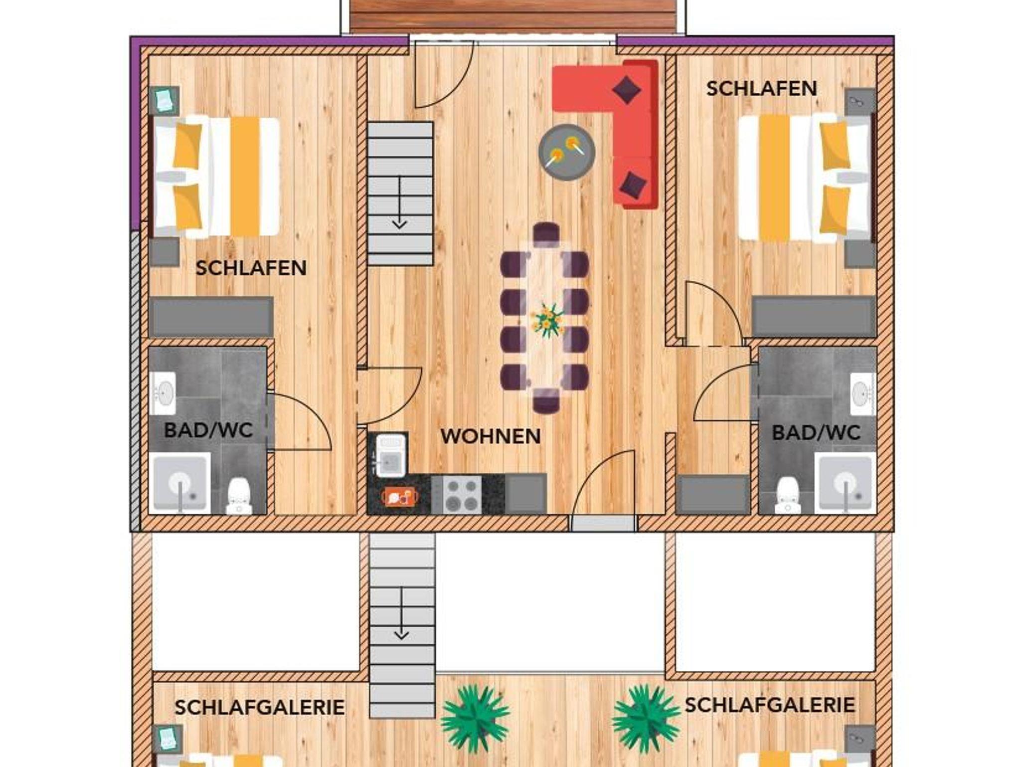 - 4 Schlafzimmer mit je einem Doppelbett