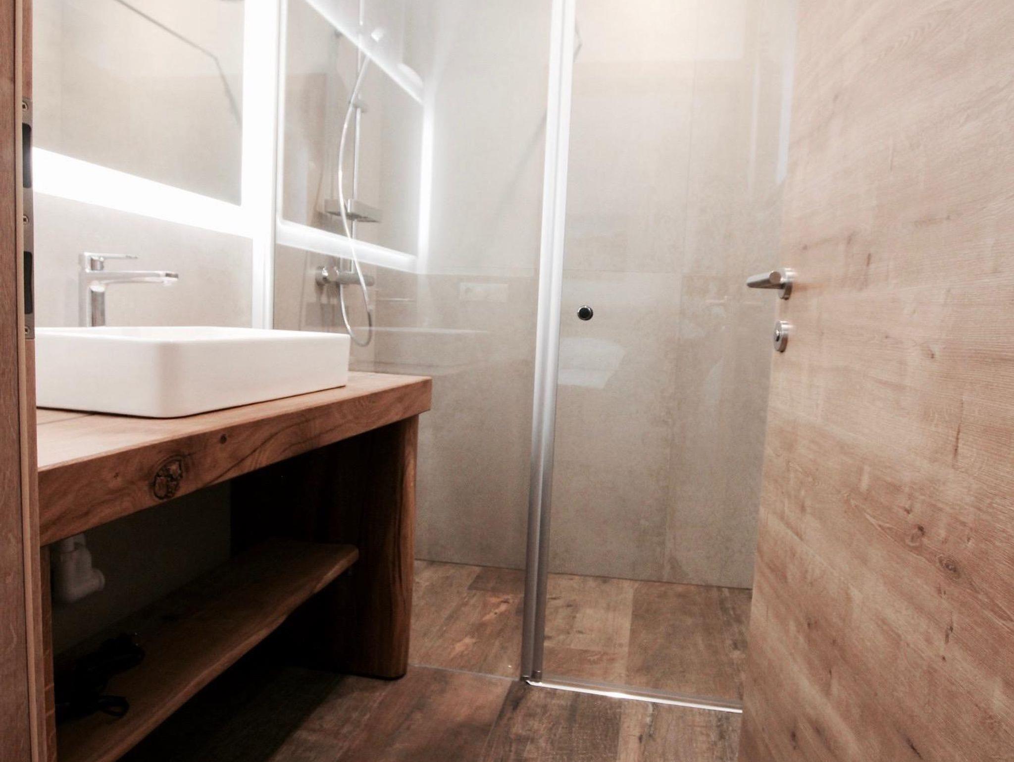 Die beiden Suiten im OG (AO und BO) hingegen überzeugen mit ihrer großzügigen Raumaufteilung, dem Sichtdachstuhl und den schönen Terrassen mit Bergblick und reiner Südlage. Diese Suiten sind noch etwas hochwertiger ausgestattet als die beiden im EG.
