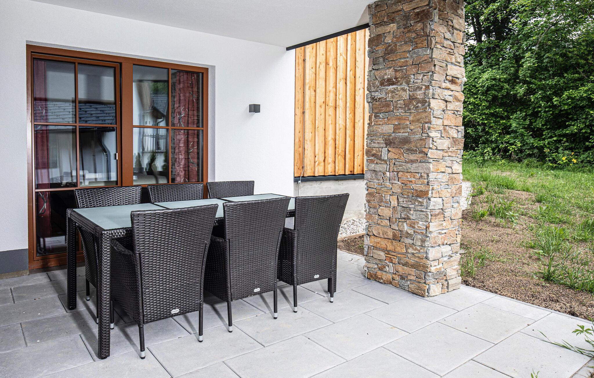På den solrige terrasse med liggestole kan I slappe af og nyde den friske bjergluft. Saml familien til fælles måltider udenfor, og læg planer for jeres næste aktiviteter. Dette moderne feriehus rummer tre andre ferielejligheder, hvilket skaber en hyggelig, men alligevel privat atmosfære.