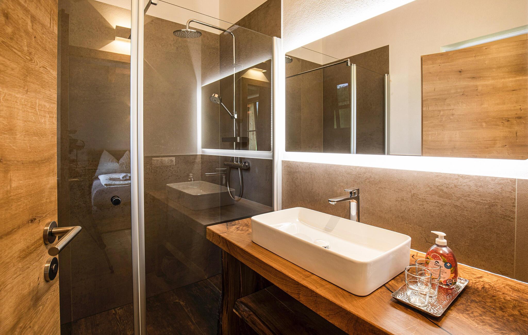 På den solrige terrasse med liggestole kan I slappe af og nyde den friske bjergluft. Saml familien til fælles måltider udenfor, og læg planer for jeres næste aktiviteter. Dette moderne feriehus rummer tre andre ferielejligheder, hvilket skaber en hyggelig, men alligevel privat atmosfære.