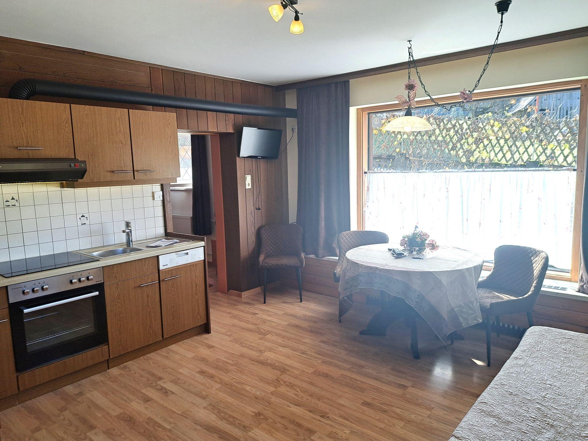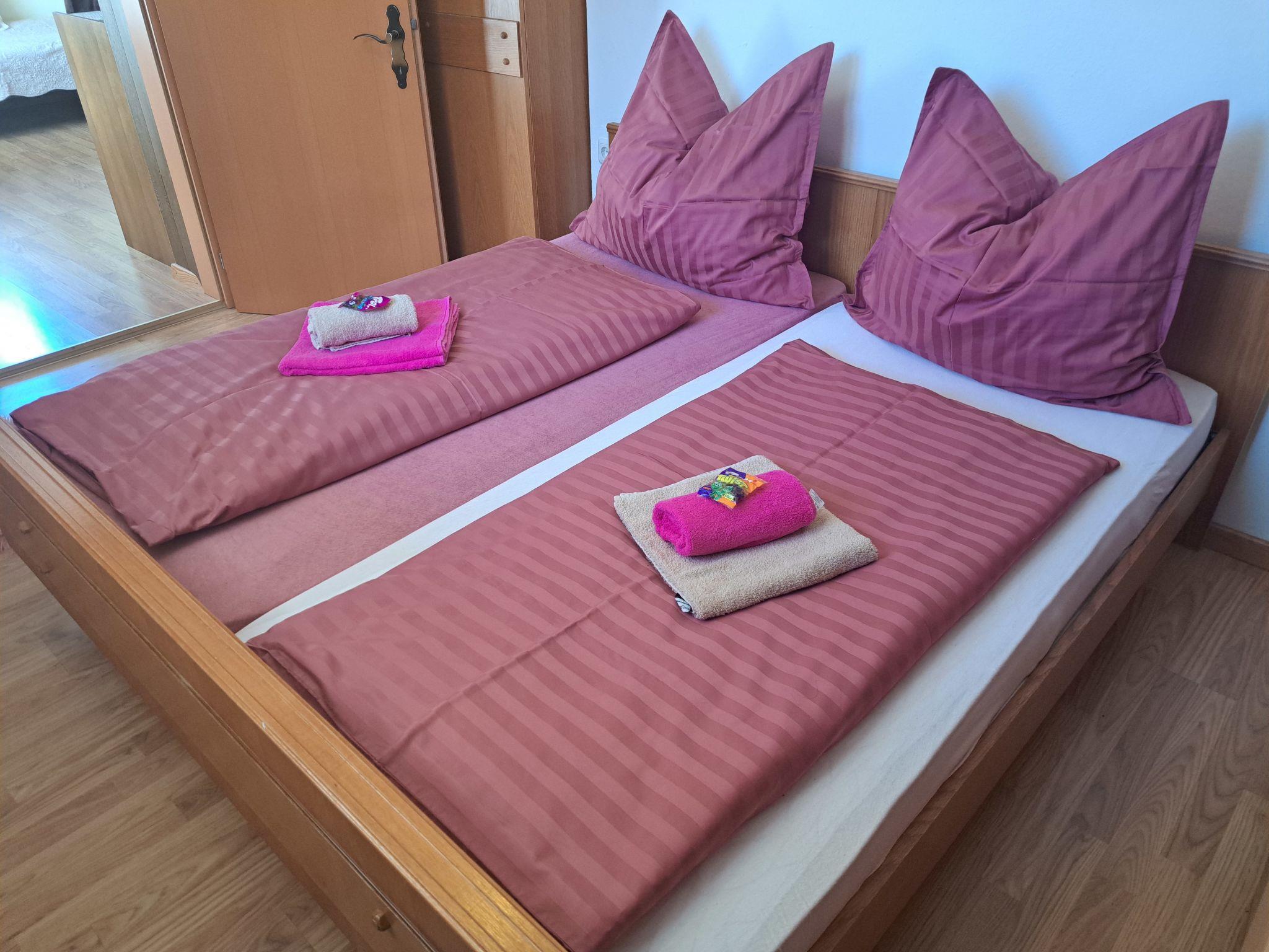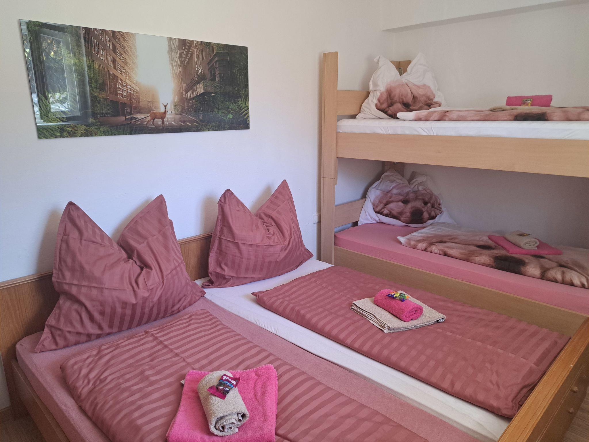 "Appartement 1", 2-room apartment 40 m2. Cosy furnishings: entrance hall. 1 room with 1 x 2 bunk beds, 1 double bed. Large kitchen (oven, dishwasher, 4 ceramic glass hob hotplates, toaster, kettle, microwave) with dining nook. Bath/shower/WC. Heating. Parquet floors. Please note: non-smoking house. Maximum 2 pets/ dogs allowed. Also ideal for groups! Can be booked together with Apartment 2 and thus offers space for 10 people. // Reg. Nr.: 502100001702020