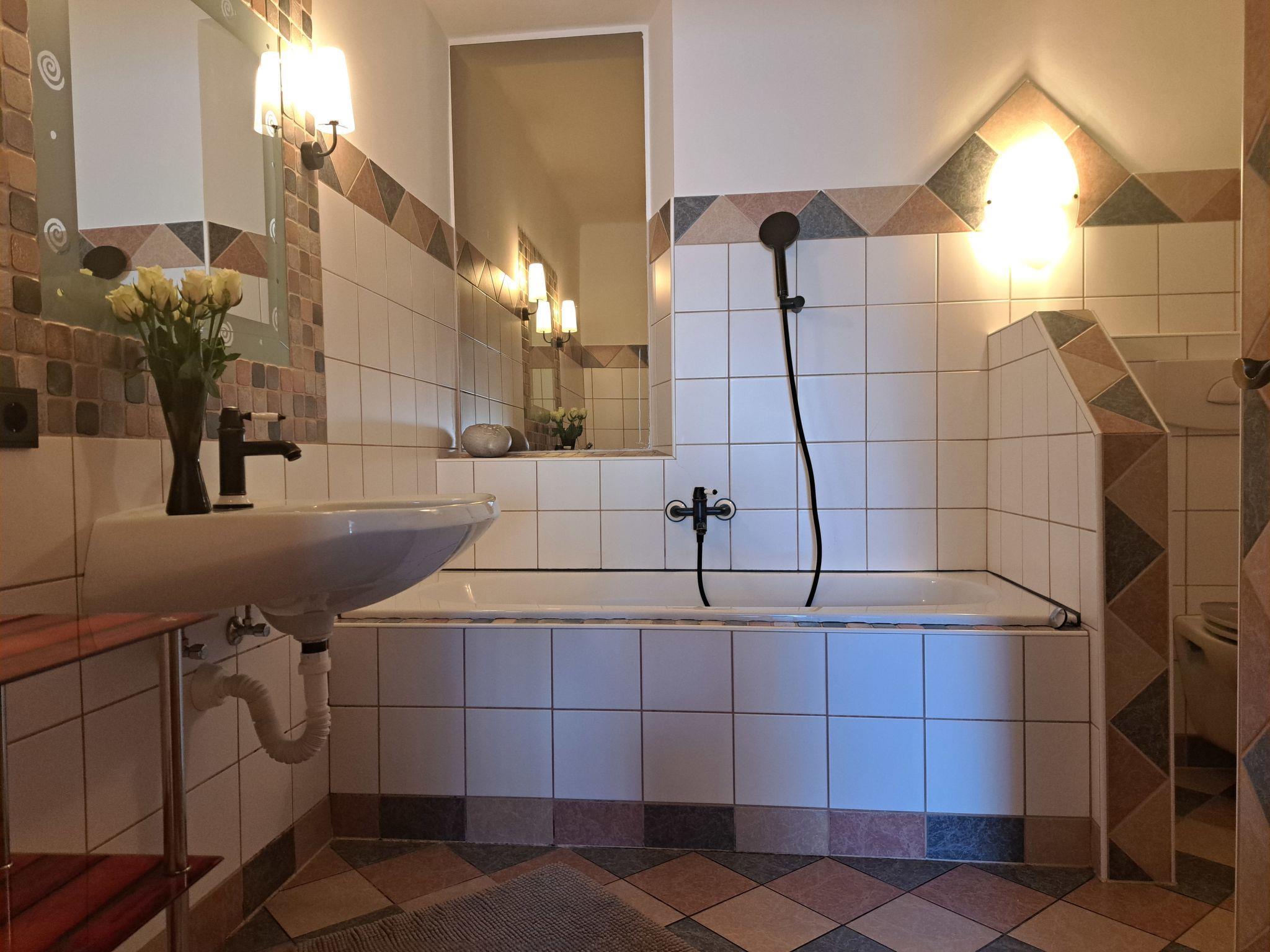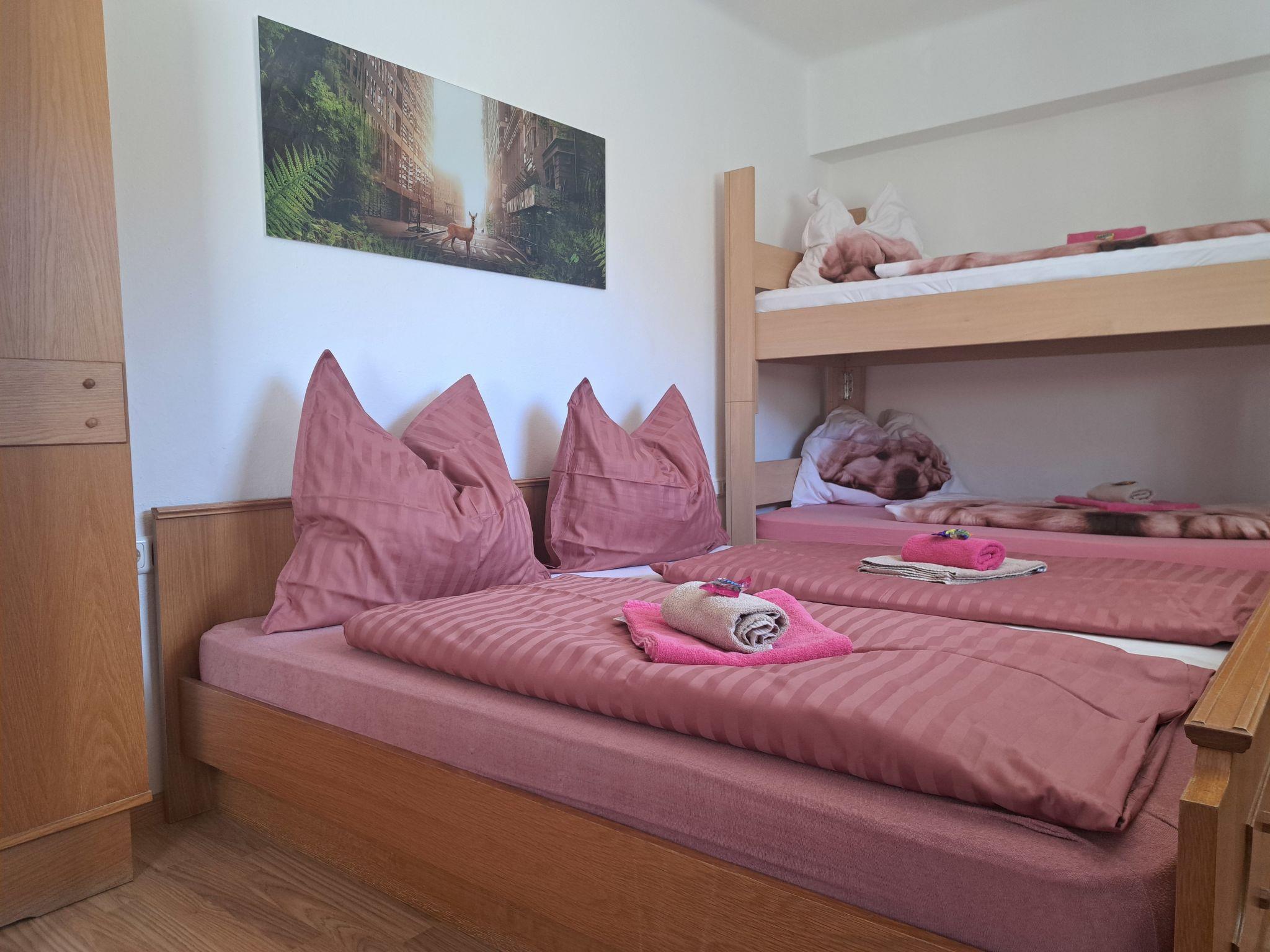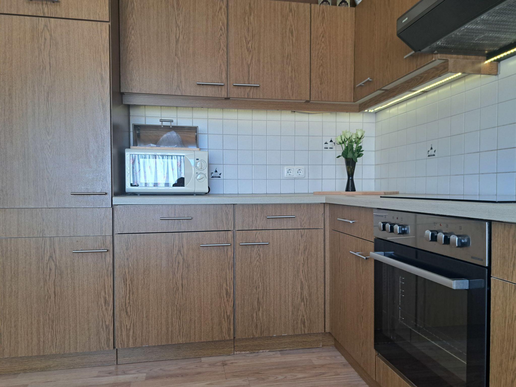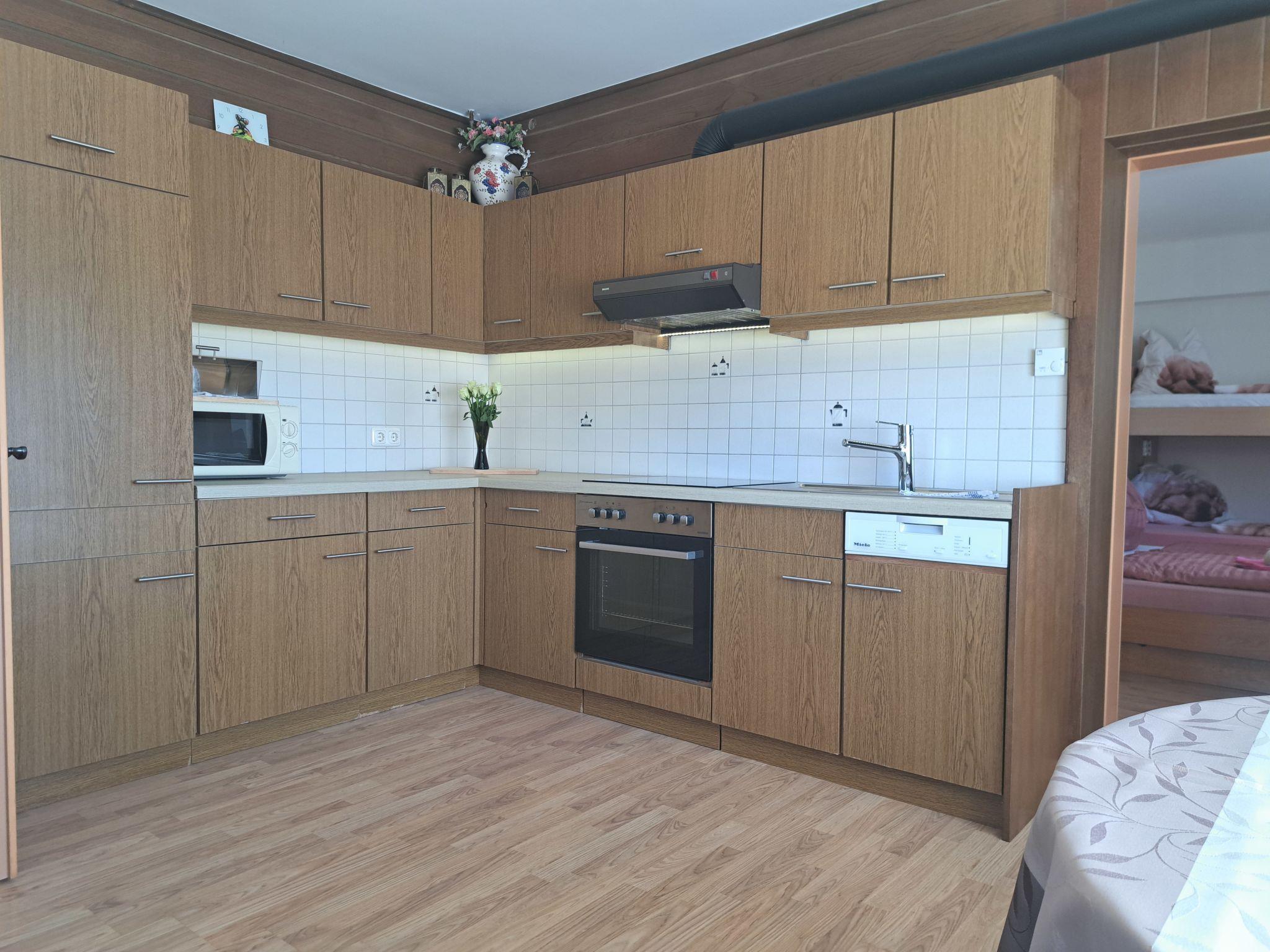 "Appartement 1", 2-room apartment 40 m2. Cosy furnishings: entrance hall. 1 room with 1 x 2 bunk beds, 1 double bed. Large kitchen (oven, dishwasher, 4 ceramic glass hob hotplates, toaster, kettle, microwave) with dining nook. Bath/shower/WC. Heating. Parquet floors. Please note: non-smoking house. Maximum 2 pets/ dogs allowed. Also ideal for groups! Can be booked together with Apartment 2 and thus offers space for 10 people. // Reg. Nr.: 502100001702020