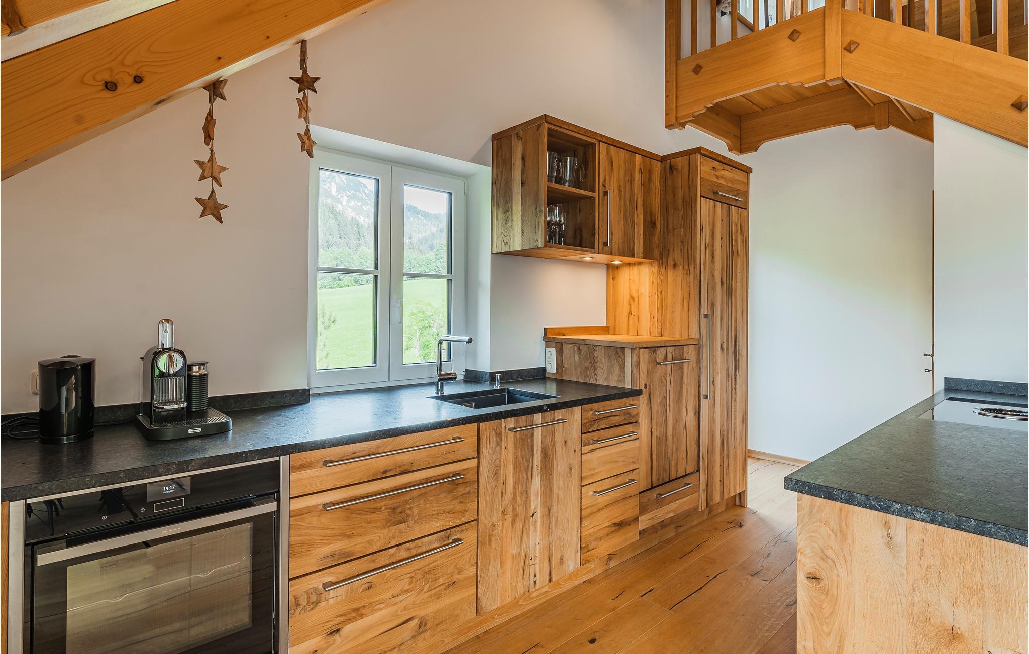 Både udefra og indenfor overbeviser denne bolig med kærlige detaljer, rustik trækonstruktion og en særlig charme, smukt indlejret i de idylliske omgivelser. Her er det muligt at finde ro sammen med sine nærmeste og lade batterierne op mellem begivenhedsrige dage i bjergene.