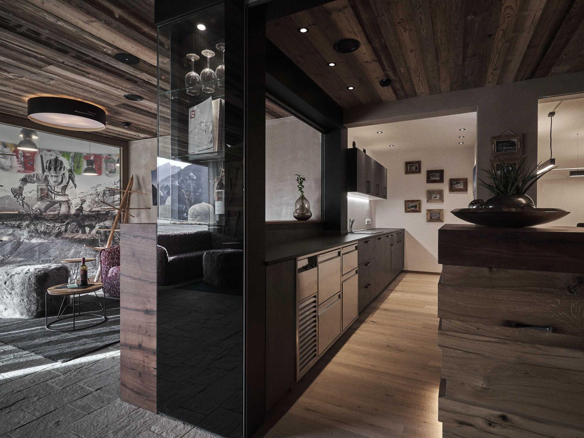 Unsere Chalets sind alle hochwertig eingerichtet mit Altholz vom Michl's Stadel, heimischen Hölzern aus den Wäldern des Ötztales sowie mit Steinmauern vom Ötztaler Granit. Das Bergsteiger Chalet bietet einen Vorraum, 2 Doppelzimmer mit Boxspringbetten, ein Mehrbettzimmer mit Boxspringbetten für bis zu 4 Personen, ein Bad mit WC und Regendusche, Föhn, ein weiteres Bad mit 22 m² Größe mit Badewanne, Liegebereich, Regendusche sowie 2 Infrarotsitzbänken sowie einem eigenen Balkon, Flat-TV in den Zimmern, Wohnraum mit Essecke und voll ausgestatteter Küche (Backrohr mit Mikrowellenfunktion, Ceranfeld mit 4 Platten, Spülmaschine, Kühlschrank mit Gefrierfach, Wasserkocher, Geschirr), Safe, Terrasse, Balkon.