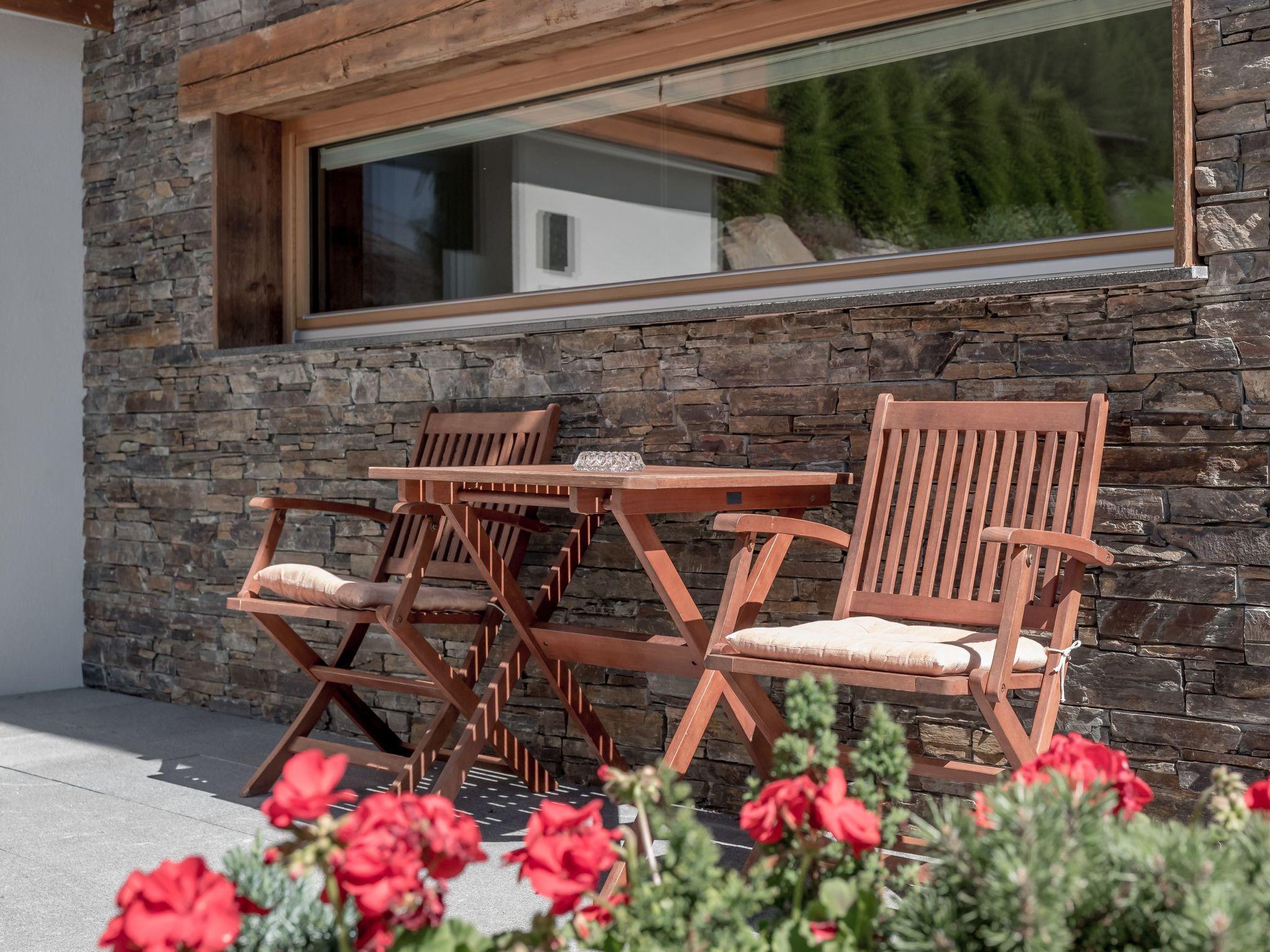 The outdoor area impresses with a south-facing balcony, which is furnished with chairs and tables and from which you can enjoy a marvellous view of the Ötztal mountains. A free car parking space, an electric charging station and a bike cellar with workbench and washing area are also available.