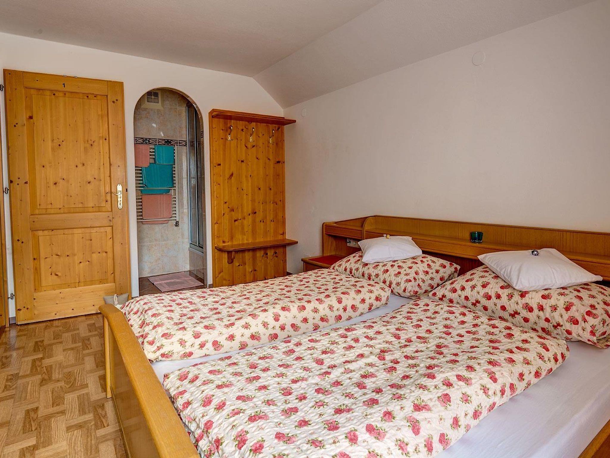 Doppelzimmer mit Dusche u. WC in umliegender Bergwelt in ruhiger Lage. Neu eingerichtet mit SAT-TV und Sitzgruppe.
