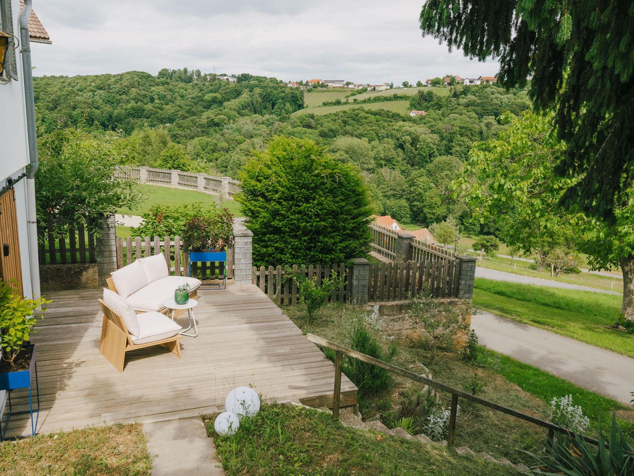 Auf der großzügigen Terrasse mit Blick auf das atemberaubend schöne Tal kann man laue Sommernächte bei einem köstlichen Glaserl steirischen Wein so richtig genießen.