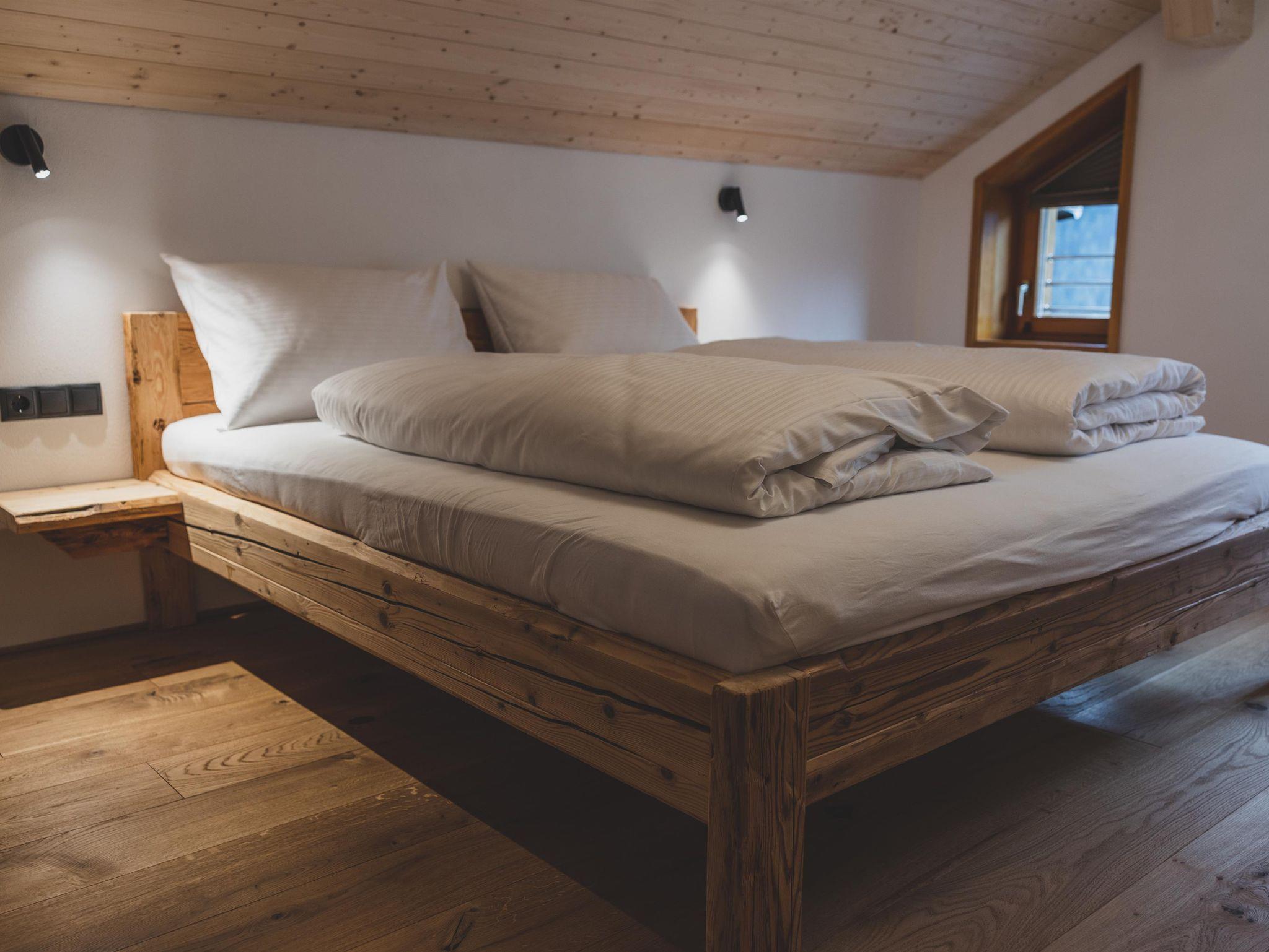 Im Montafonerhaus wurden in Wohn- und Schlafzimmern der ursprüngliche Stil des Hauses erhalten und revitalisiert, Küche und Badezimmer wurden modern und hochwertig gestaltet. Dadurch entstand ein interessanter Kontrast zwischen Alt und Neu.