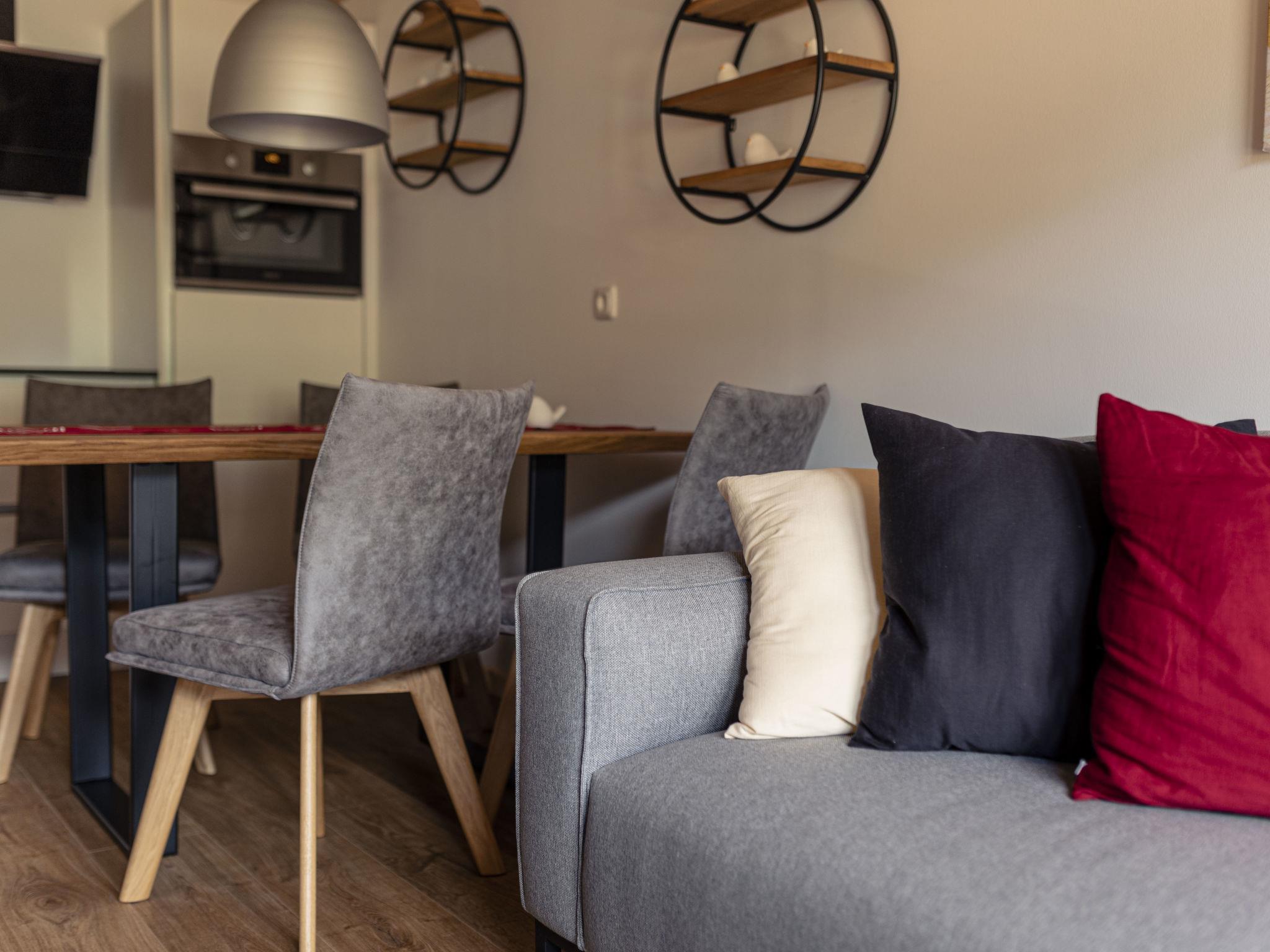 "mit 2 Schlafzimmern & IR-Sauna", 3-room apartment 48 m2. Bright, comfortable and tasteful furnishings: 1 double bedroom. Open living/dining room with dining nook, satellite TV and flat screen. 1 room with 1 x 2 bunk beds. Open kitchen (oven, dishwasher, 4 ceramic glass hob hotplates, toaster, kettle, freezer, electric coffee machine). Shower/WC, sep. WC. Balcony. Balcony furniture. Beautiful view of the countryside. Facilities: sauna. Internet (WiFi, free). Please note: non-smokers only. The property is one of a type of property or apartment. The sauna is an infrared cabin!