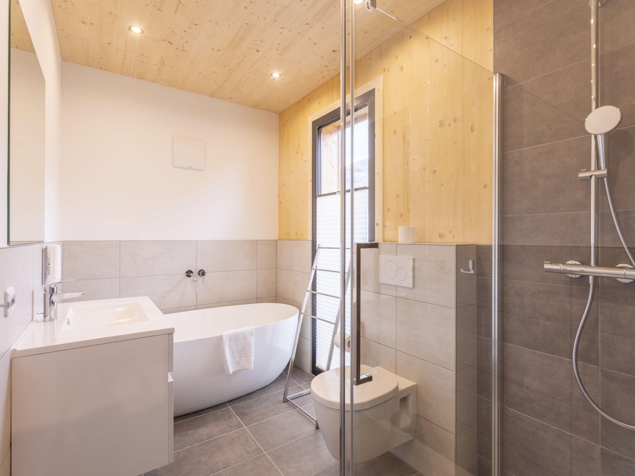 "Penthouse 2c mit Sauna&Außenbadewanne", 5-room apartment 112 m2. Spacious and bright, tasteful furnishings: living/dining room with dining nook and satellite TV (flat screen). 4 double bedrooms. Open kitchen (oven, dishwasher, 4 ceramic glass hob hotplates, toaster, kettle, microwave, electric coffee machine). 2 showers/WC, 2 sep. WC's. Balcony or terrace. Terrace furniture. Beautiful view of the mountains and the countryside. Facilities: hair dryer. Internet (WiFi, free). Please note: non-smokers only. The property is one of a type of property or apartment. The apartment has an outdoor bathtub.