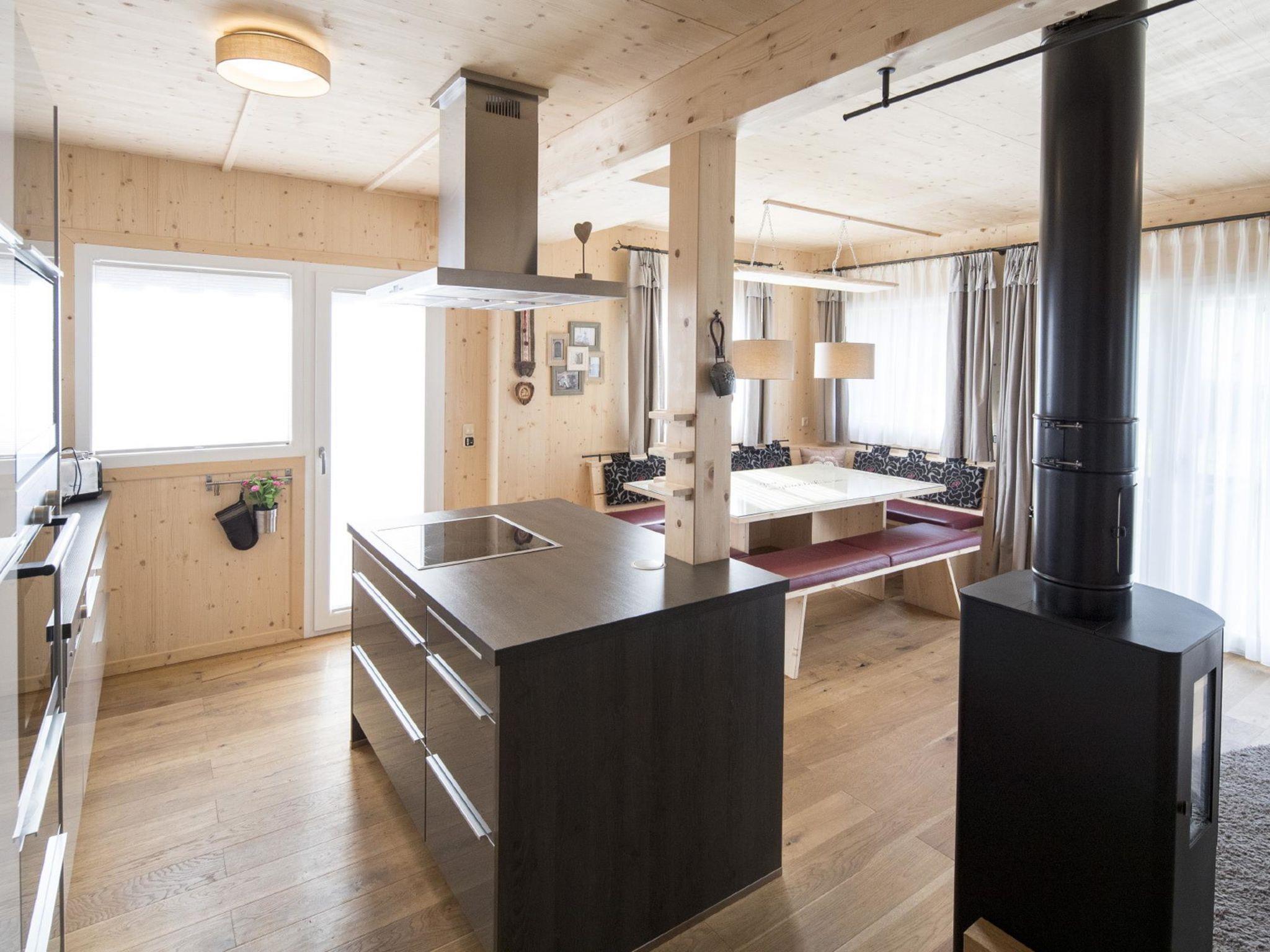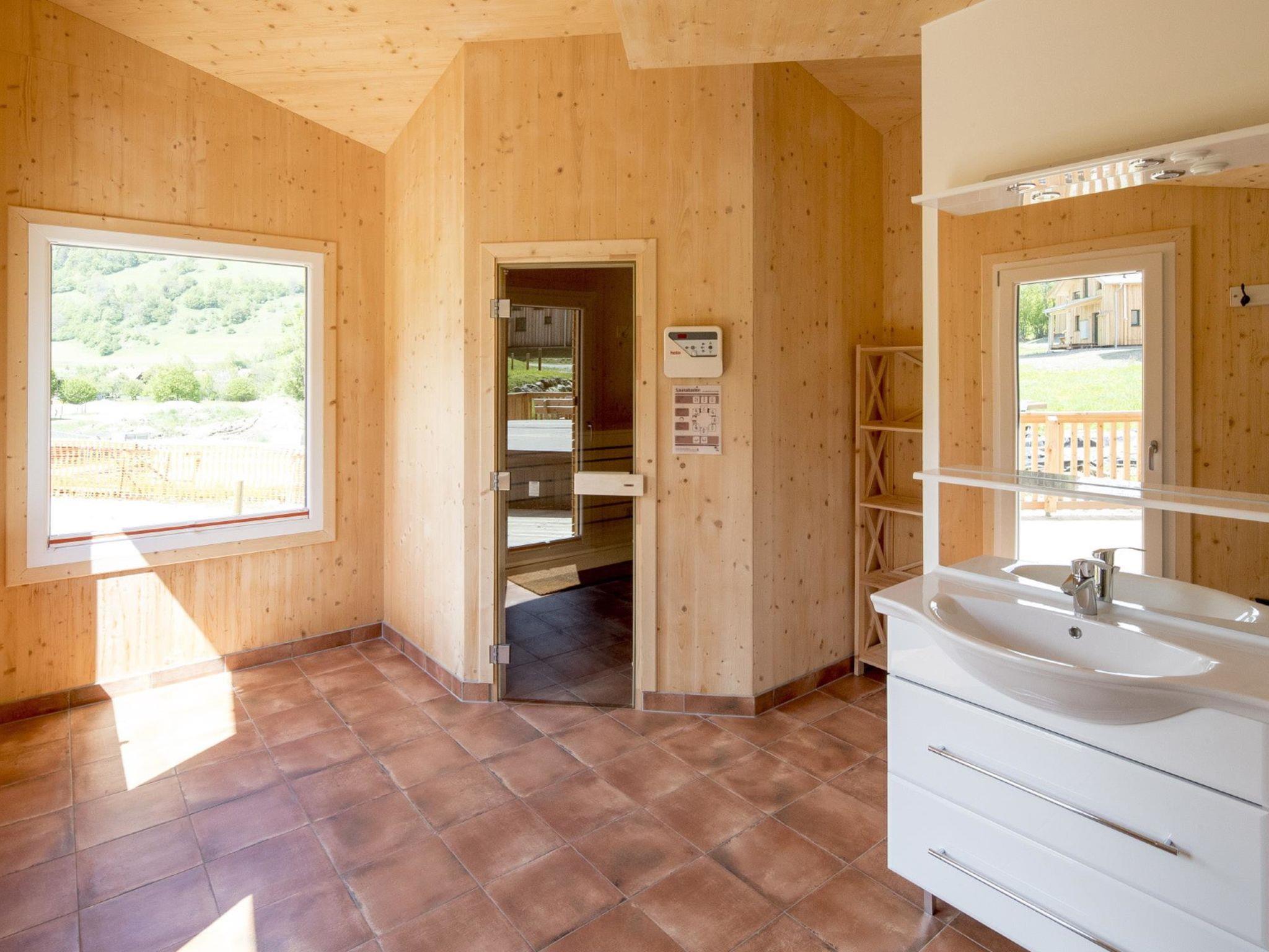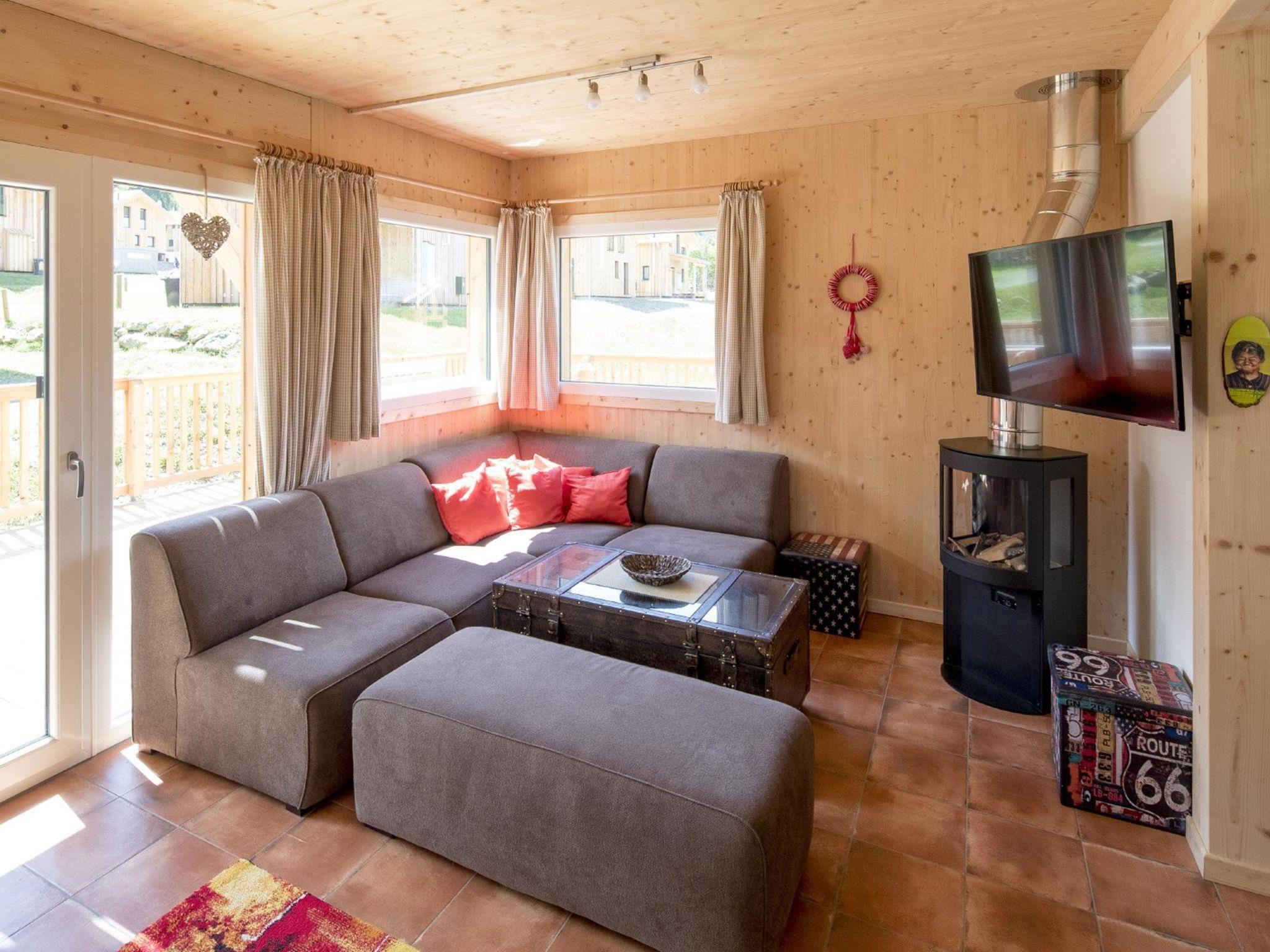 "Chalet 4 Schlafzimmern, Sauna & SwimSPA", 5-room chalet 100 m2 on 2 levels. Bright, comfortable and wooden furniture furnishings: entrance hall. Living/dining room with dining table and satellite TV (flat screen). 3 double bedrooms. 1 room with 1 bed and 1 x 2 bunk beds. Open kitchen (oven, dishwasher, 4 ceramic glass hob hotplates, microwave, electric coffee machine). 2 baths or showers/WC, hydro massage bath. Balcony, terrace. Very beautiful view of the mountains, the ski run and the countryside. Facilities: sauna. Internet (WiFi, free). Please note: non-smoking house. Smoke alarm, fire extinguisher. These chalets have a SwimSpa.