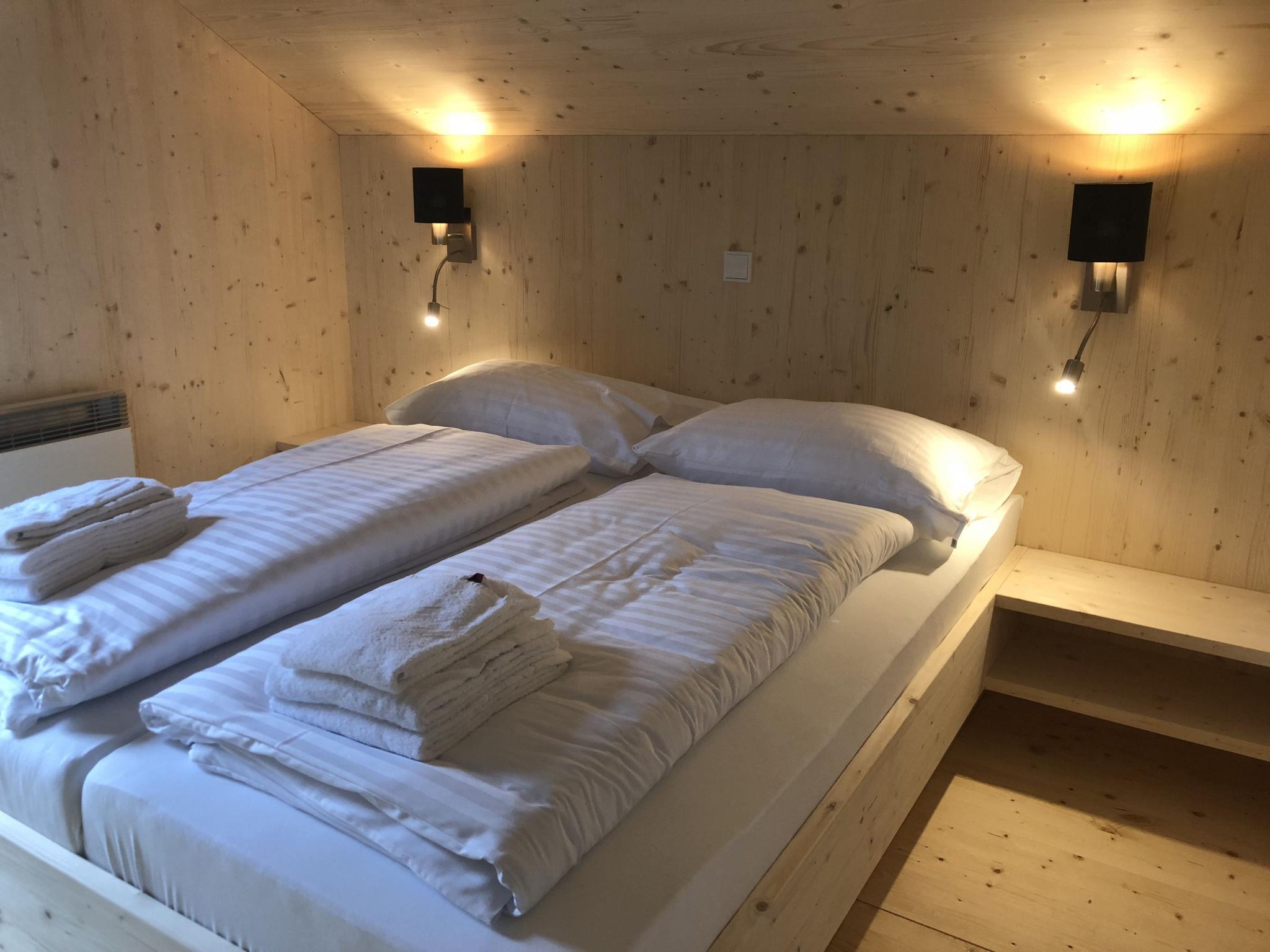 "Sup.4 SZ Sauna o.IR-Sauna+Sprudelbad", 5-room chalet 135 m2 on 2 levels. Bright, comfortable and wooden furniture furnishings: entrance hall. Living/dining room with dining table and satellite TV (flat screen). 3 double bedrooms. 1 room with 1 bed and 1 x 2 bunk beds. Open kitchen (oven, dishwasher, 4 ceramic glass hob hotplates, microwave, electric coffee machine). 2 bathrooms, sep. WC, double hand-basin, hydro massage bath. Balcony, terrace. Very beautiful view of the mountains and the ski run. Facilities: sauna. Internet (WiFi, free). Please note: non-smoking house. Smoke alarm, fire extinguisher. Private bubble baths on the terrace. The chalets are individually furnished.
