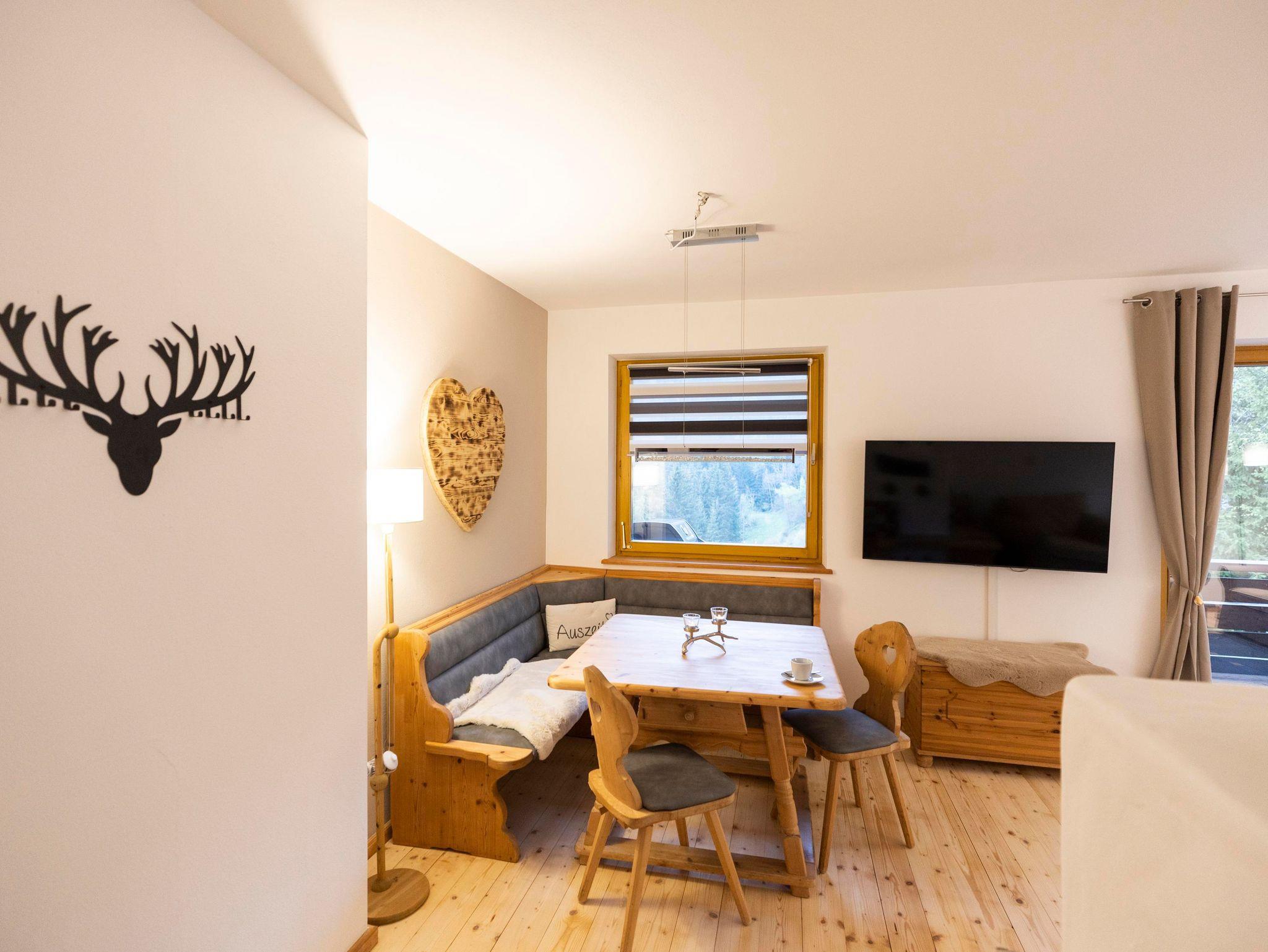 Möchtest du die gut 50 m² große, im Jahr 2023 renovierte Ferienwohnung im Appartementhaus auf dem Konradgut in herausragender Lage auf 1.100 m Seehöhe kennenlernen? Die 2-Zimmer-Wohnung im 1. Stock des Hauses bietet u. a. auf seinem 11,25 qm Balkon eine gemütliche Lounge und lässt einen gigantischen Blick auf die umliegenden Berge zu. Die stilvoll eingerichtete Wohnung bietet hier oben Ruhe und Entspannung. Lass' den Alltag hinter dir und schalte einfach ab.