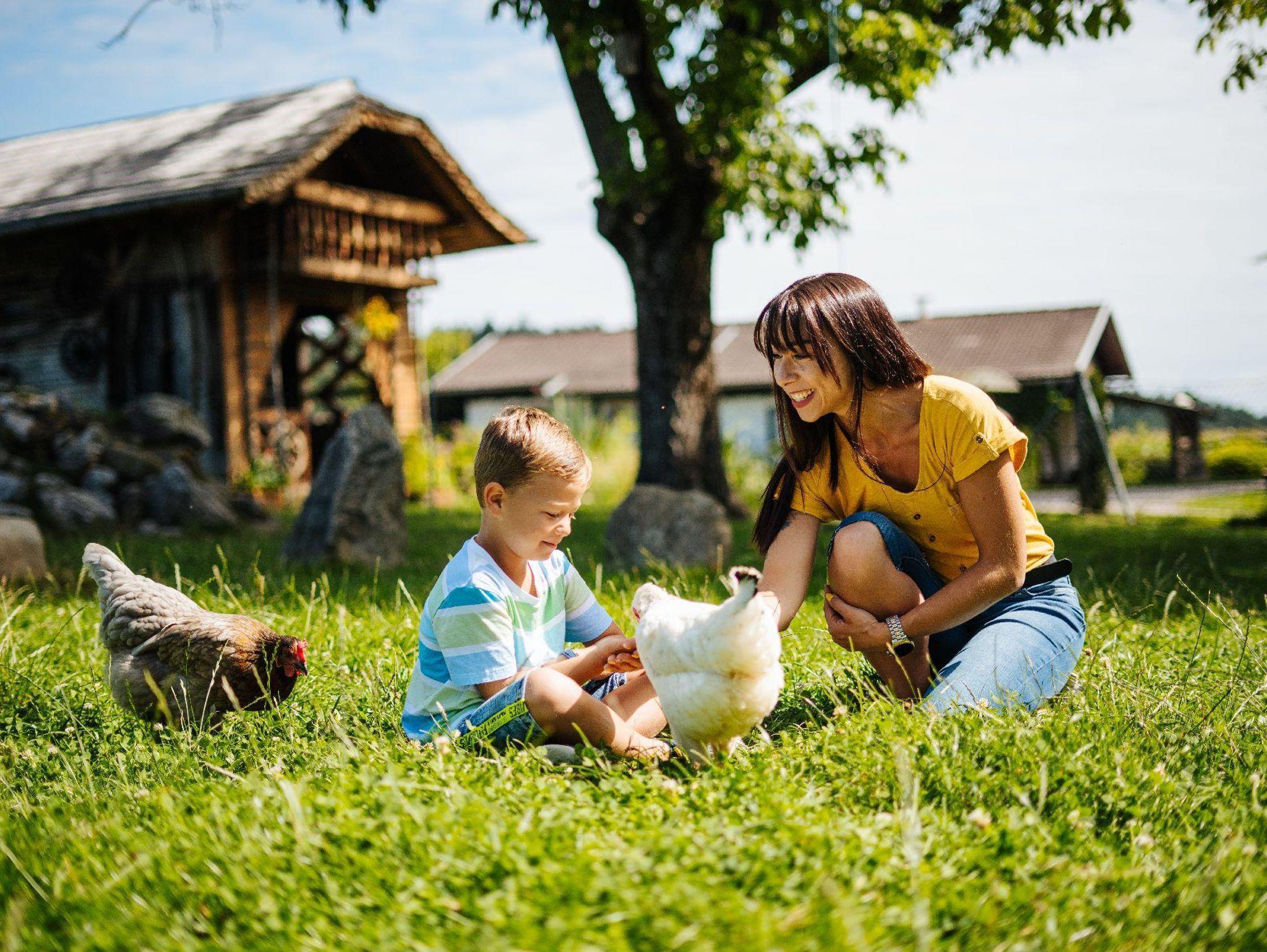 Genießen Sie auf unserem riesigen Hof-Areal die Ruhe, während sich die Kids bei den Streicheltieren oder am großen Spielplatz austoben.