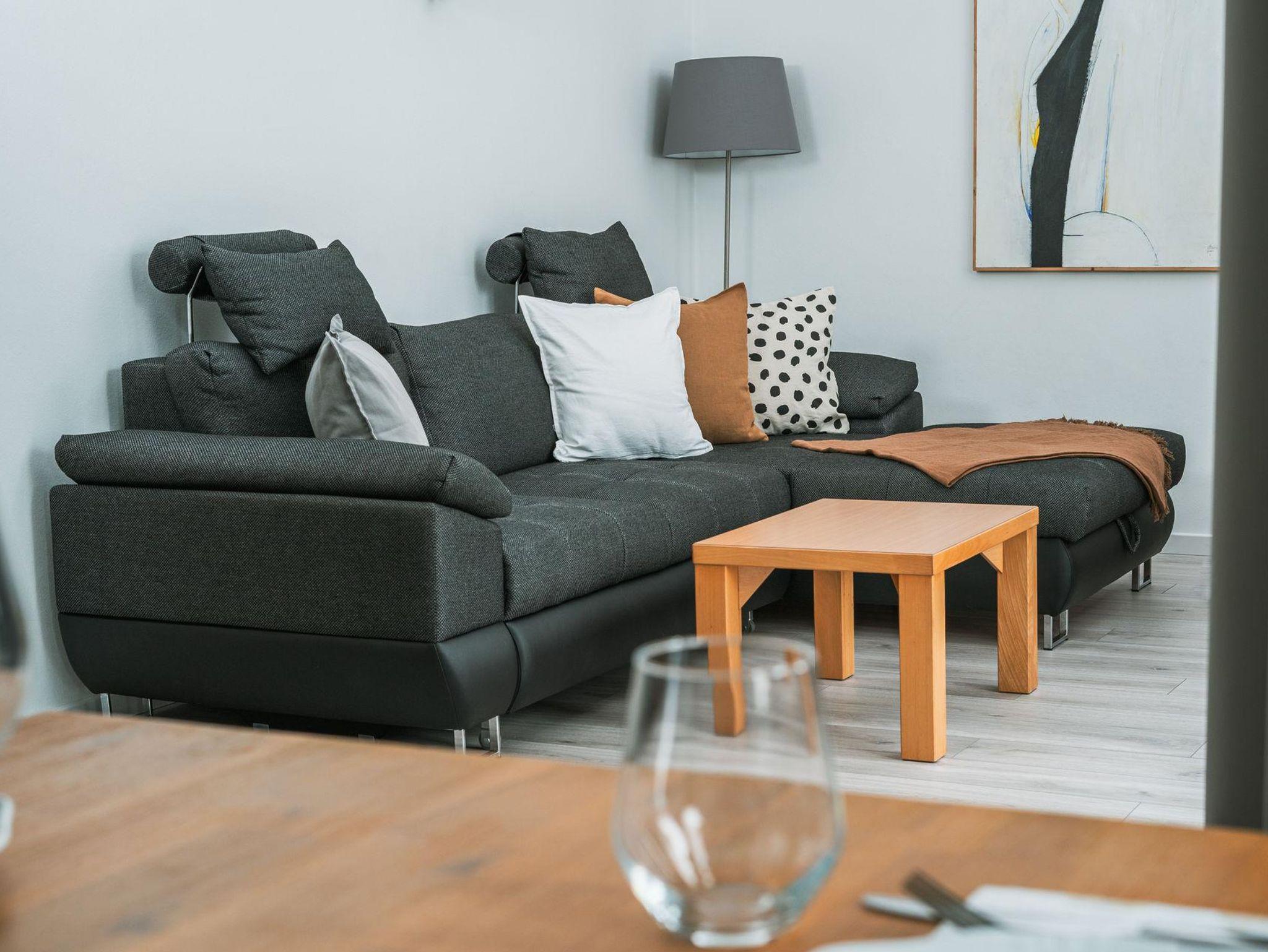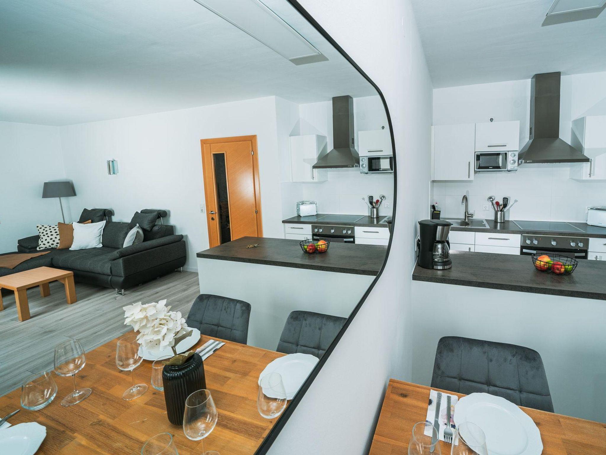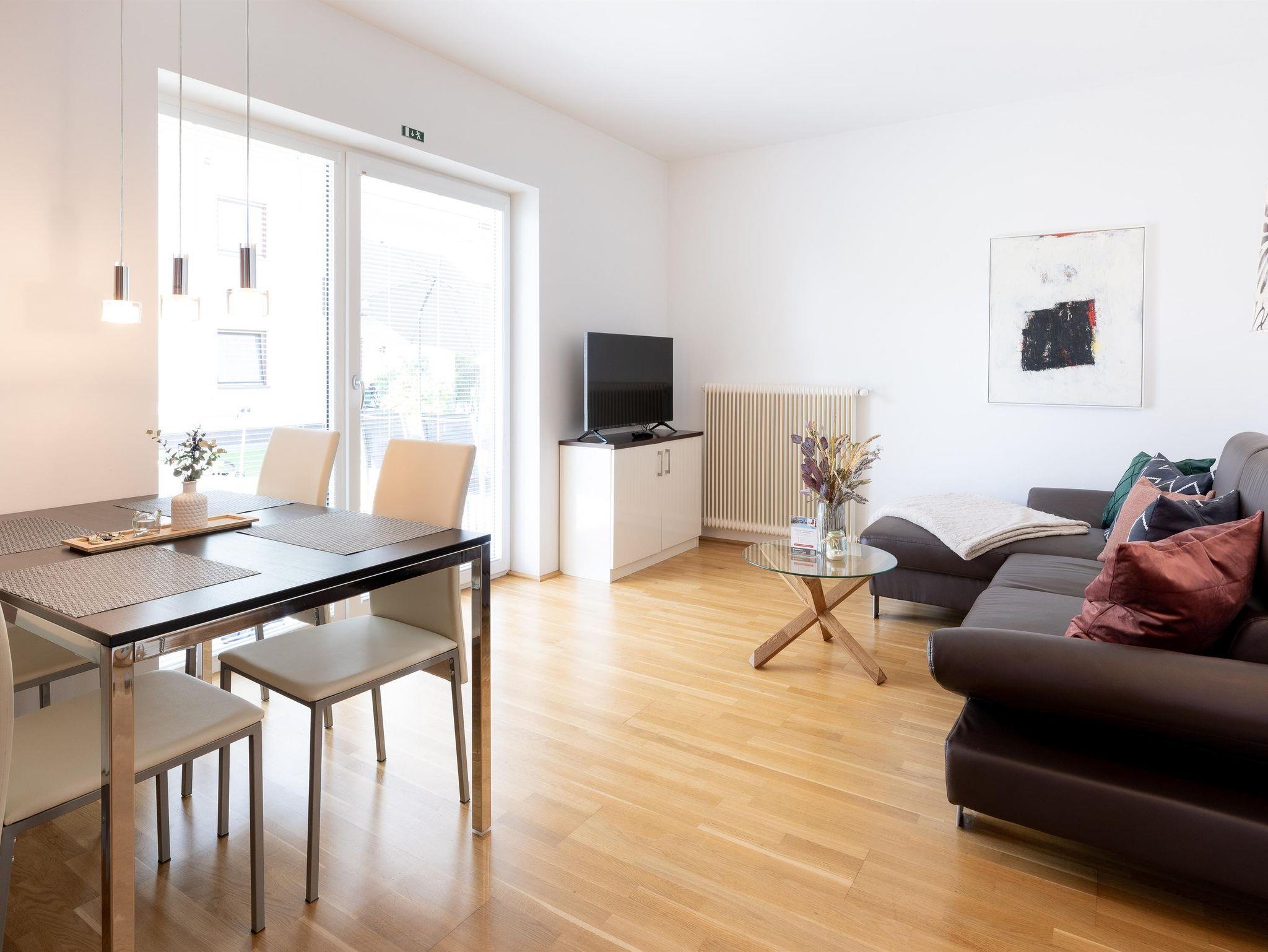 Die Wohnungen bestehen aus einem Vorraum, zwei Doppelzimmer, Badezimmer/WC,Fön, einem Wohnzimmer mit ausziehbarer Couchgarnitur, Esstisch, LCD-TV mit Musikkanal, Internet über W-LAN, komplett ausgestatteter Küche mit Mikrowelle, Geschirrspüler, Backofen, Kaffeemaschine, Sodastream uvm. sowie einen großen Balkonen mit Terrassenmöbel. Bett- u. Tischwäsche, Geschirr- u. Handtücher werden bereitgestellt. Auf Wunsch Zustellbett, Kinderbett (Gitterbett) und Hochstuhl. Waschservice gegen Gebühr im Haus.