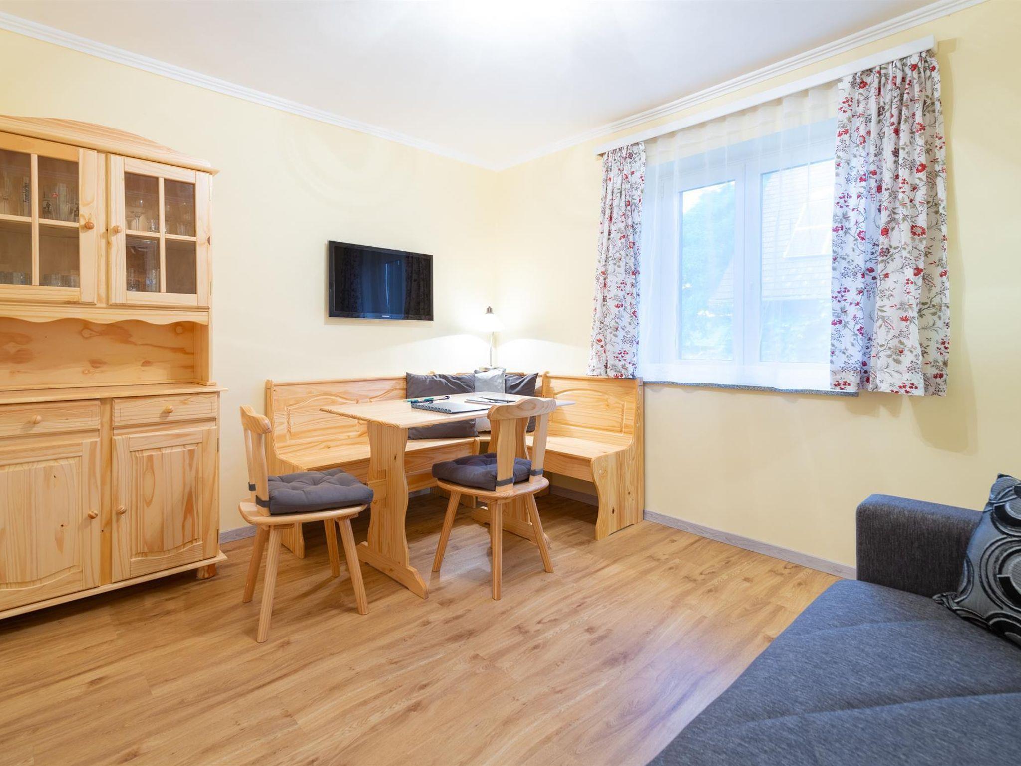 Im Esszimmer finden Sie eine Sitzecke, Flat.-TV und eine Ausziehcouch.