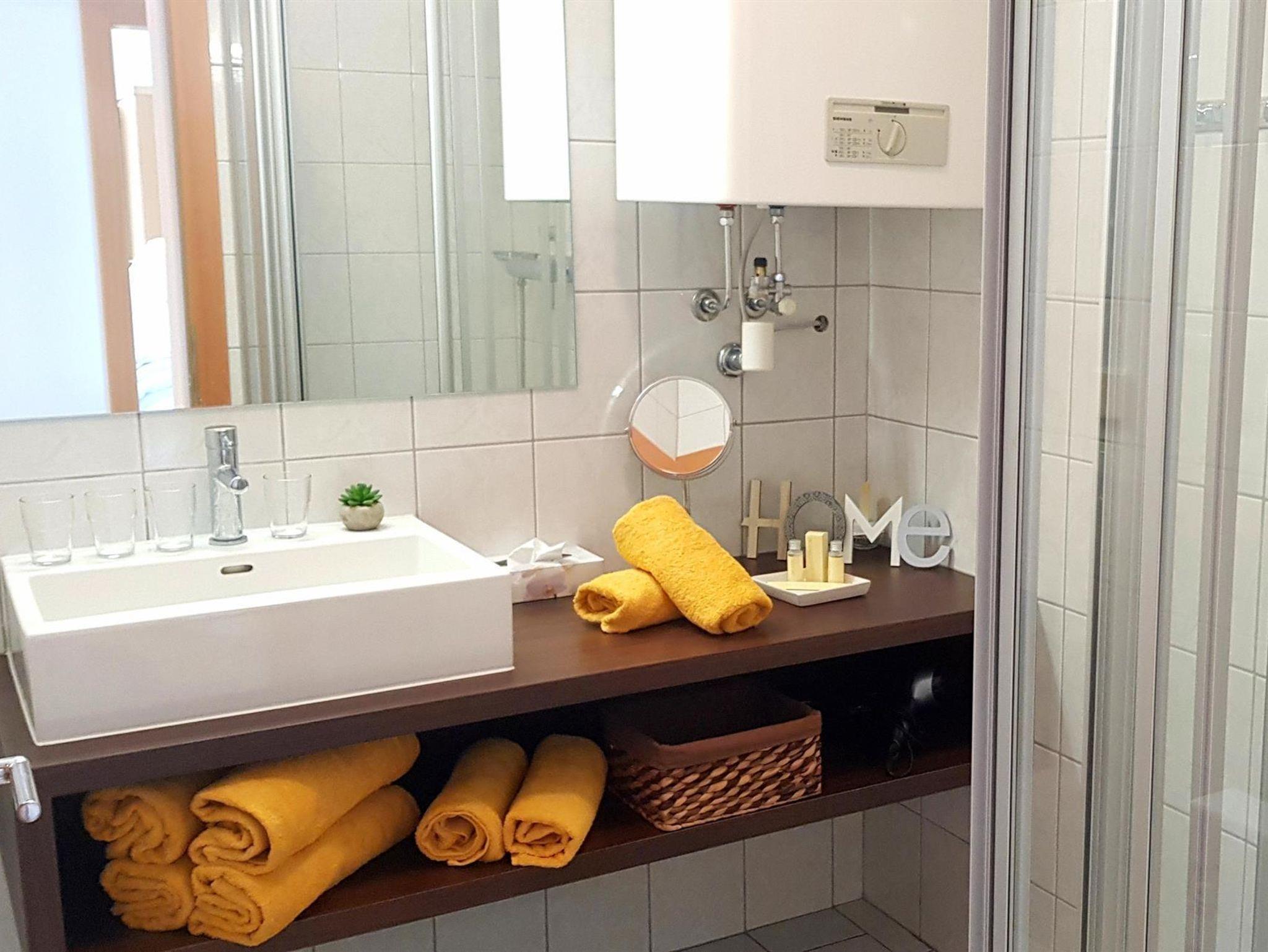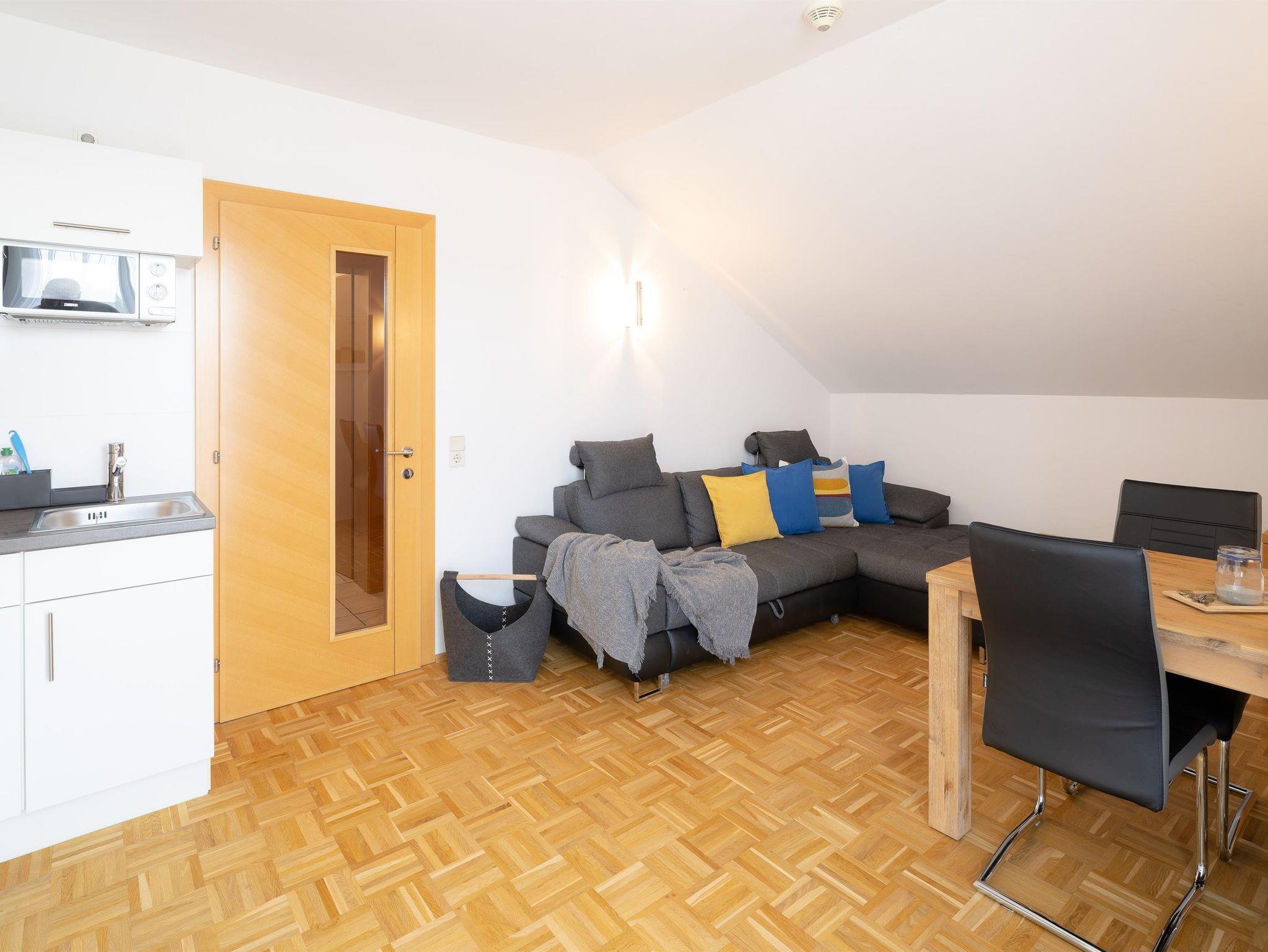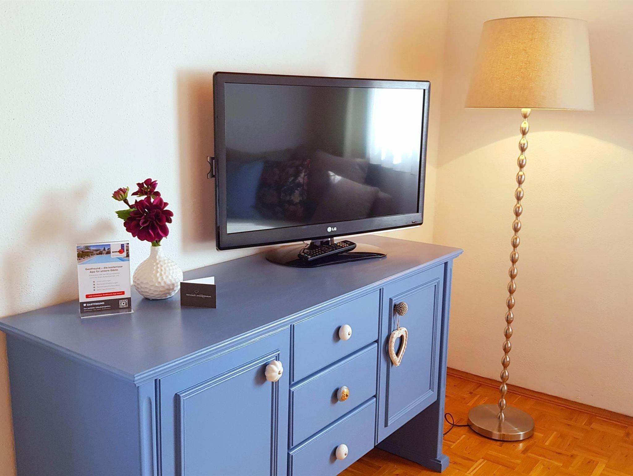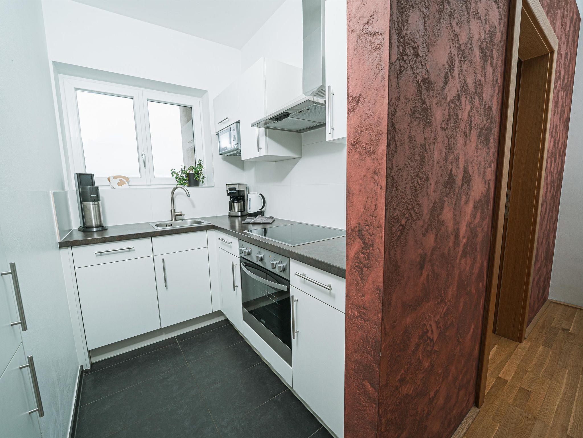 Die Wohnungen bestehen aus einem Vorraum, zwei Doppelzimmern, Dusche, sep. WC,Fön, einem Wohnzimmer mit ausziehbarer Couchgarnitur, Esstisch, LCD-TV mit Musikkanal, Internet über W-LAN, komplett ausgestatteter Küche mit Mikrowelle, Geschirrspüler, Backofen, Kaffeemaschine uvm. sowie zwei großen Balkonen mit Terrassenmöbel. Bett- u. Tischwäsche, Geschirr- u. Handtücher werden bereitgestellt. Auf Wunsch Zustellbett, Kinderbett (Gitterbett) und Hochstuhl. Waschservice gegen Gebühr im Haus.